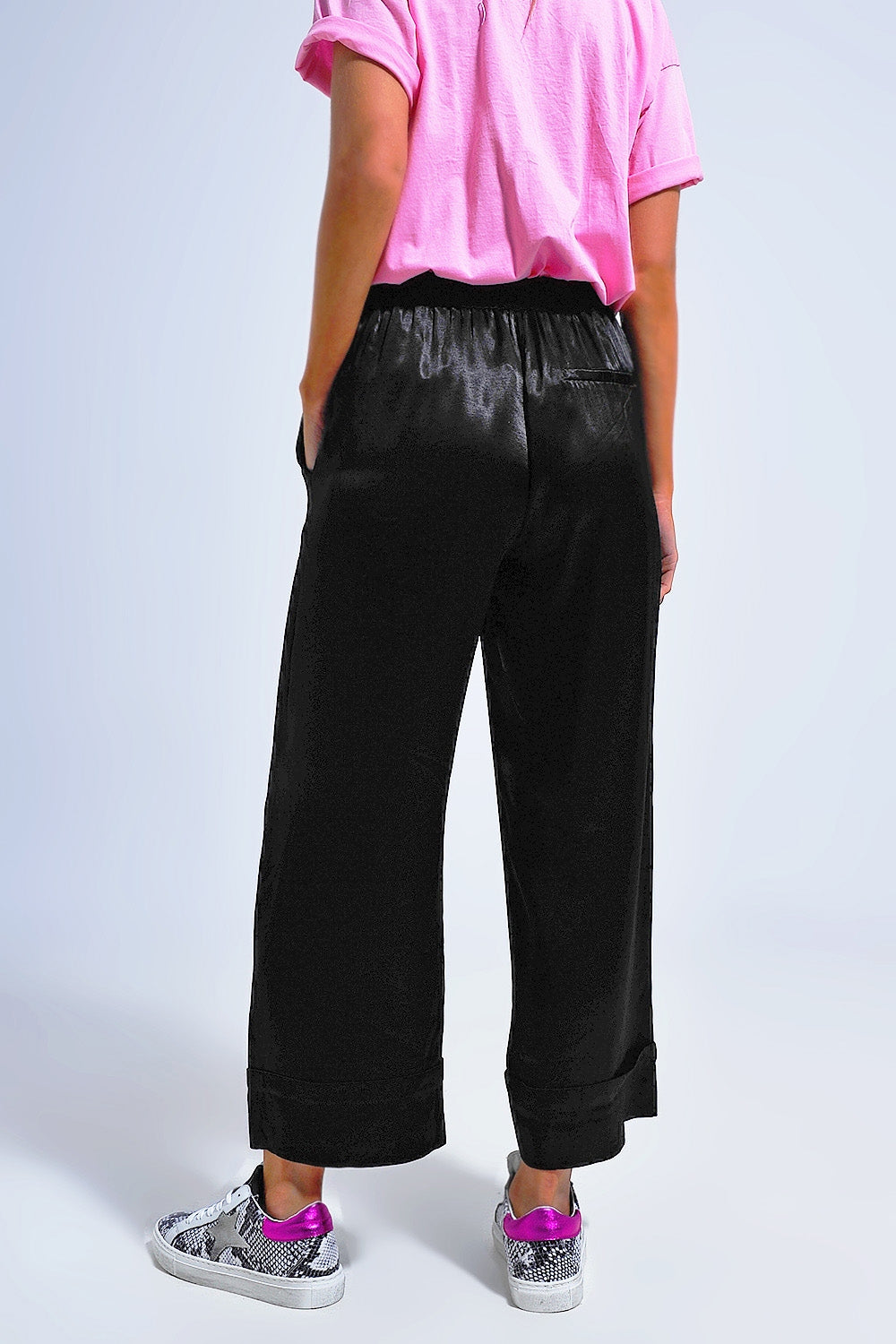 bolsos: Bolsos laterais e de trás. Bordadura: Borda dobrada. Cintura : Elástico na parte de trás. comprimento: Acima do tornozelo. Cortam: Desenho amplo. detalhe: Laços de cinto. Detalhes do produto: Bolsos funcionais. estilo: Party. Fechamento : Fecho de zíper. Perna: Pernas largas. Subcategoria: Calças. Tecido: Cetim. runs true to size. S.