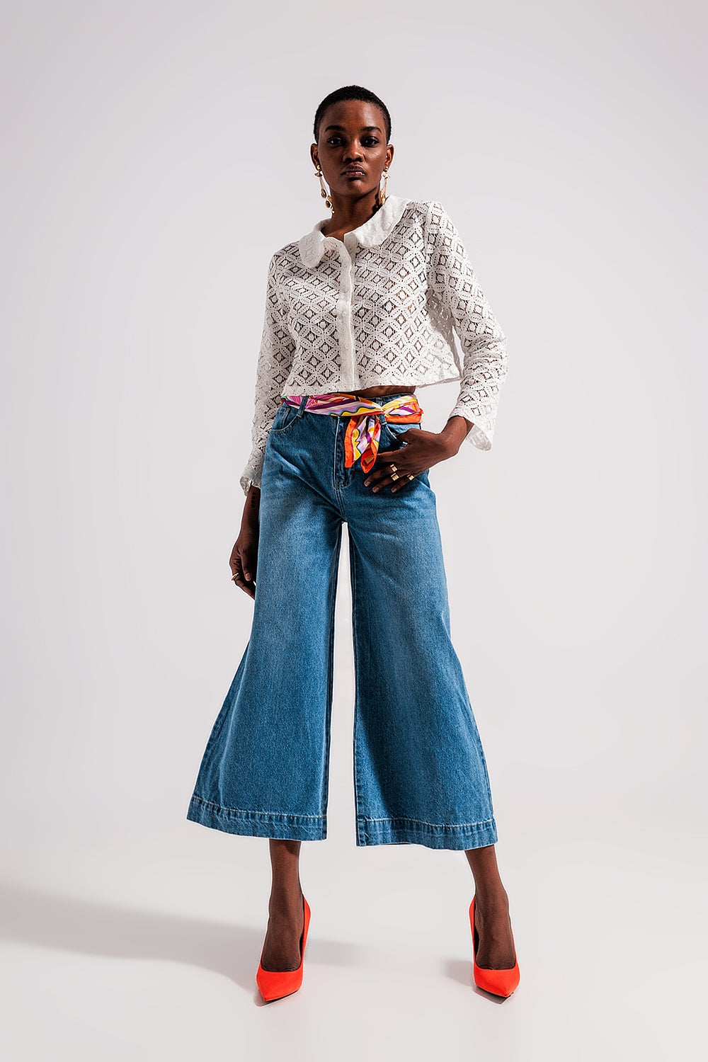 comprimento: Acima do tornozelo. Subcategoria: Calças de ganga. Cortam: Desenho amplo. Perna: Pernas largas. estilo: Casual. Tipo calças de ganga: Basic. detalhe: Laços de cinto. Tecido: Ganga rígida não esticada. bolsos: Cinco sacos. Fechamento : Fecho de zíper. Detalhes do produto: Pernas largas. runs true to size. S.
