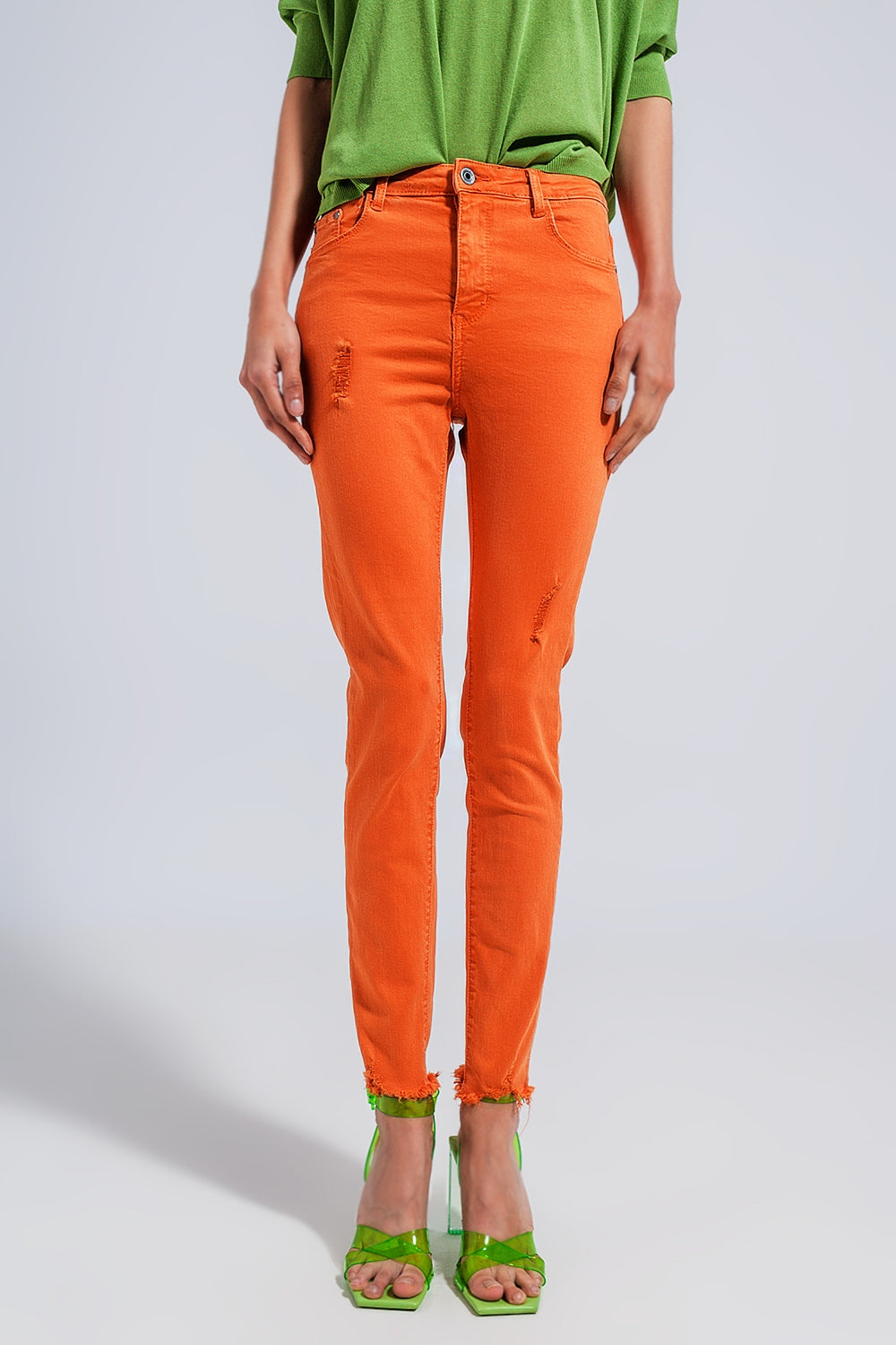 Calças de ganga de cintura alta laranja e escanzeladas
