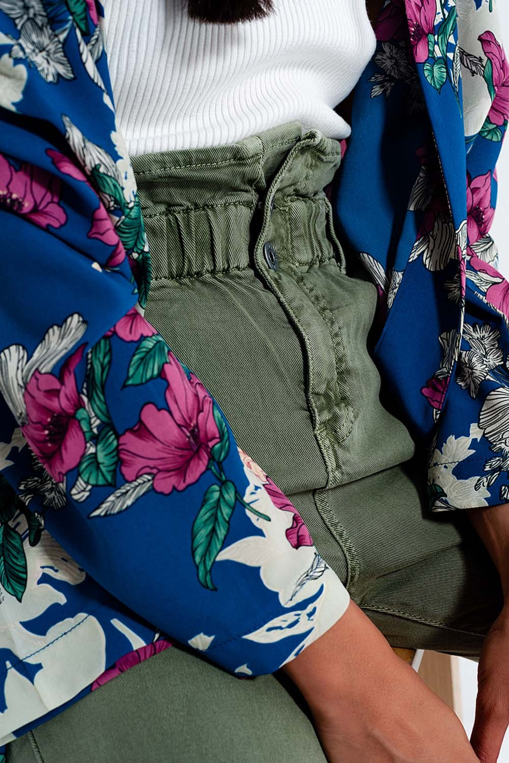 Calças de ganga Mom com cintura elástica em cáqui