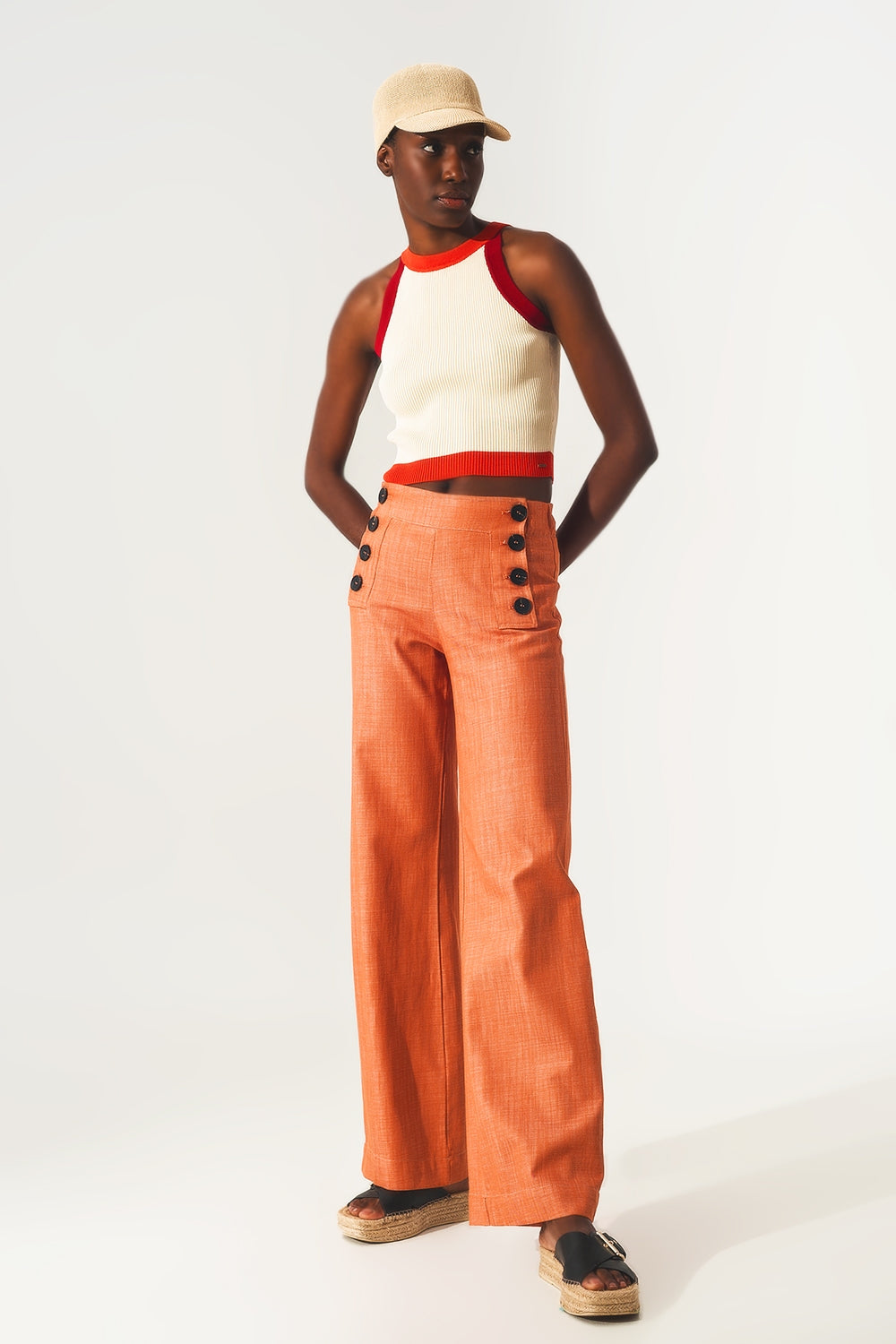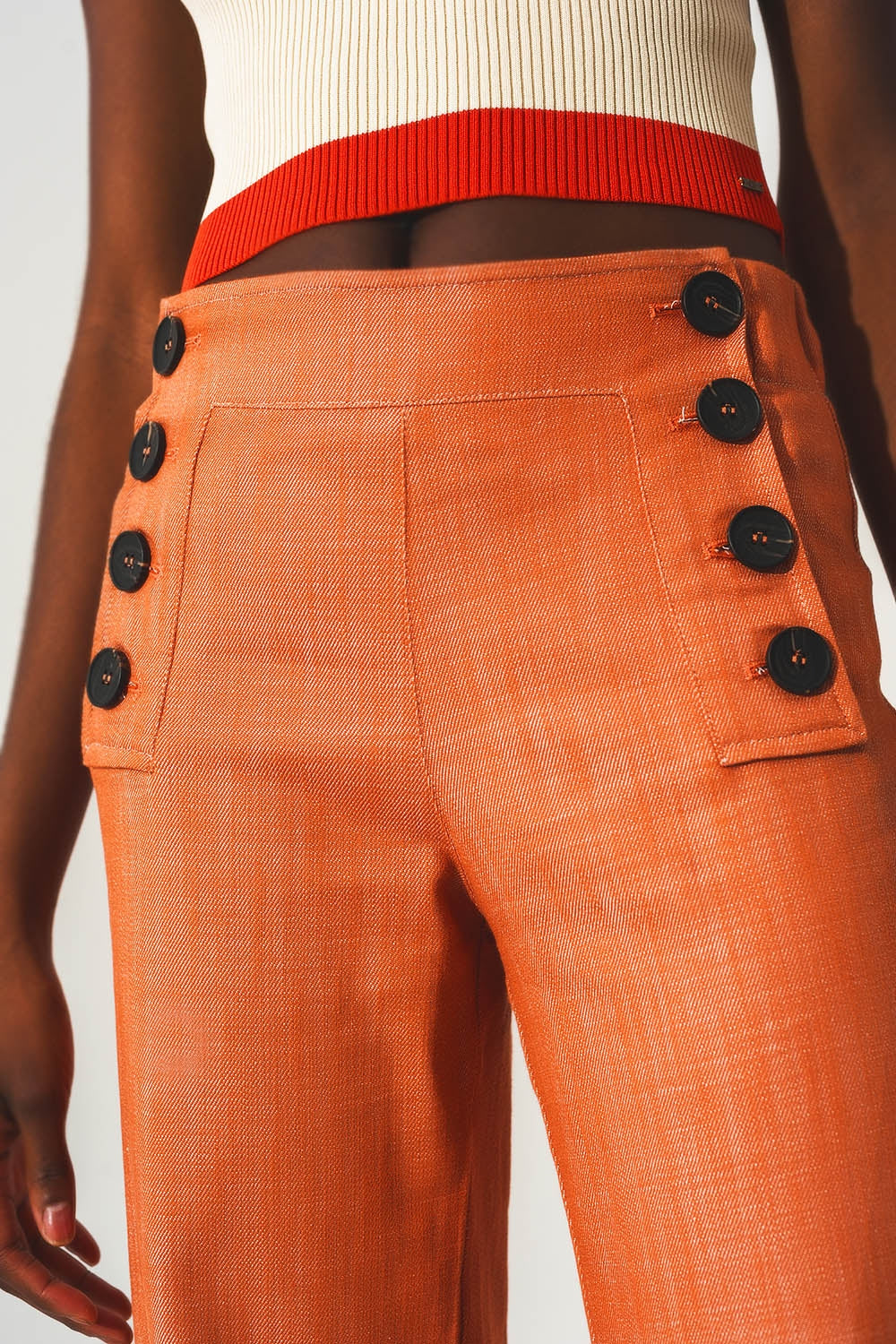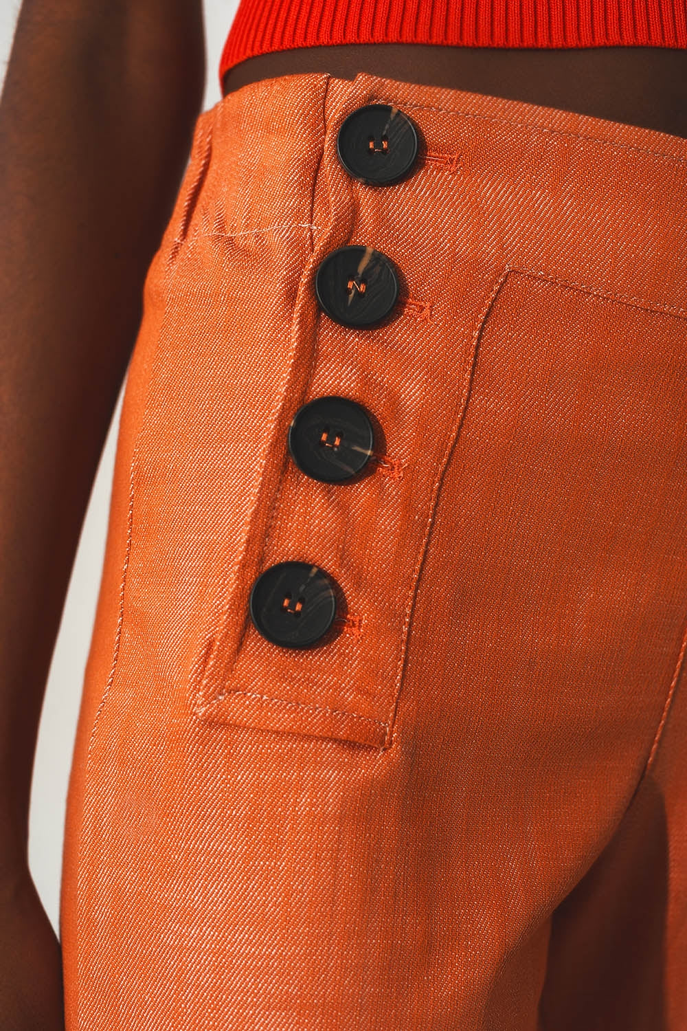 Subcategoria: Calças. Cortam: Desenho amplo. Perna: Pernas largas. estilo: Daily. detalhe: Detalhe de botões. Tecido: Algodão. Fechamento : Fecho do botão. runs small. S.
