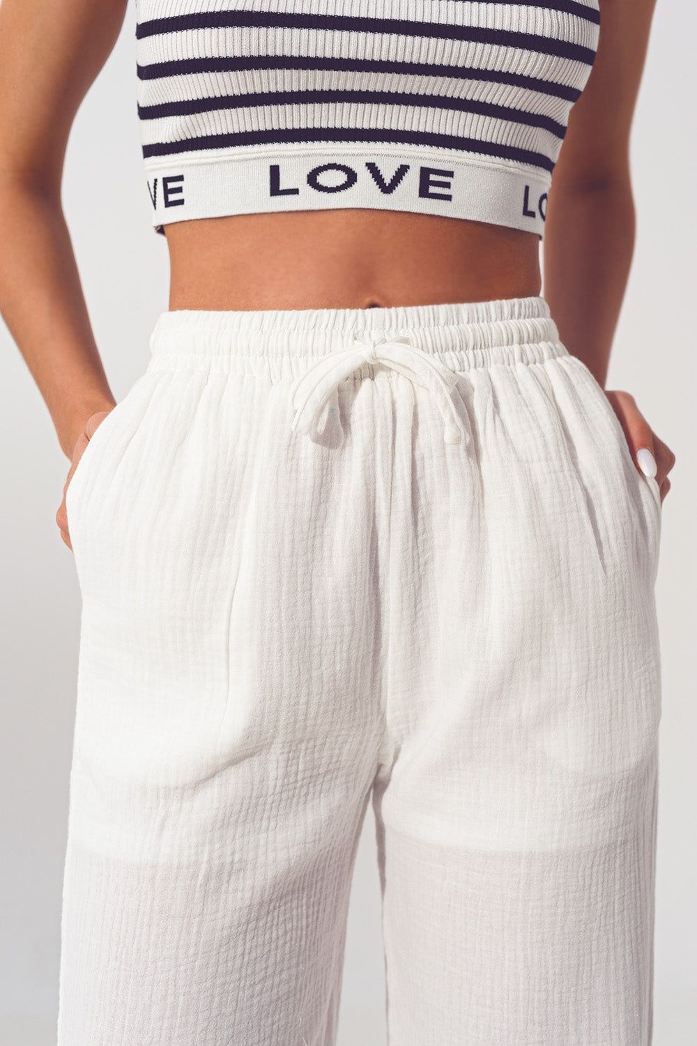 Subcategoria: Calças. Cortam: Desenho amplo. Perna: Straight. estilo: Daily. Tecido: Tecido leve . bolsos: Bolsos laterais. Fechamento : Fechamento por cordão de arrasto. Detalhes do produto: Bolsos funcionais. Cintura : Cintura elástica com cordões de cordão. runs true to size. S.