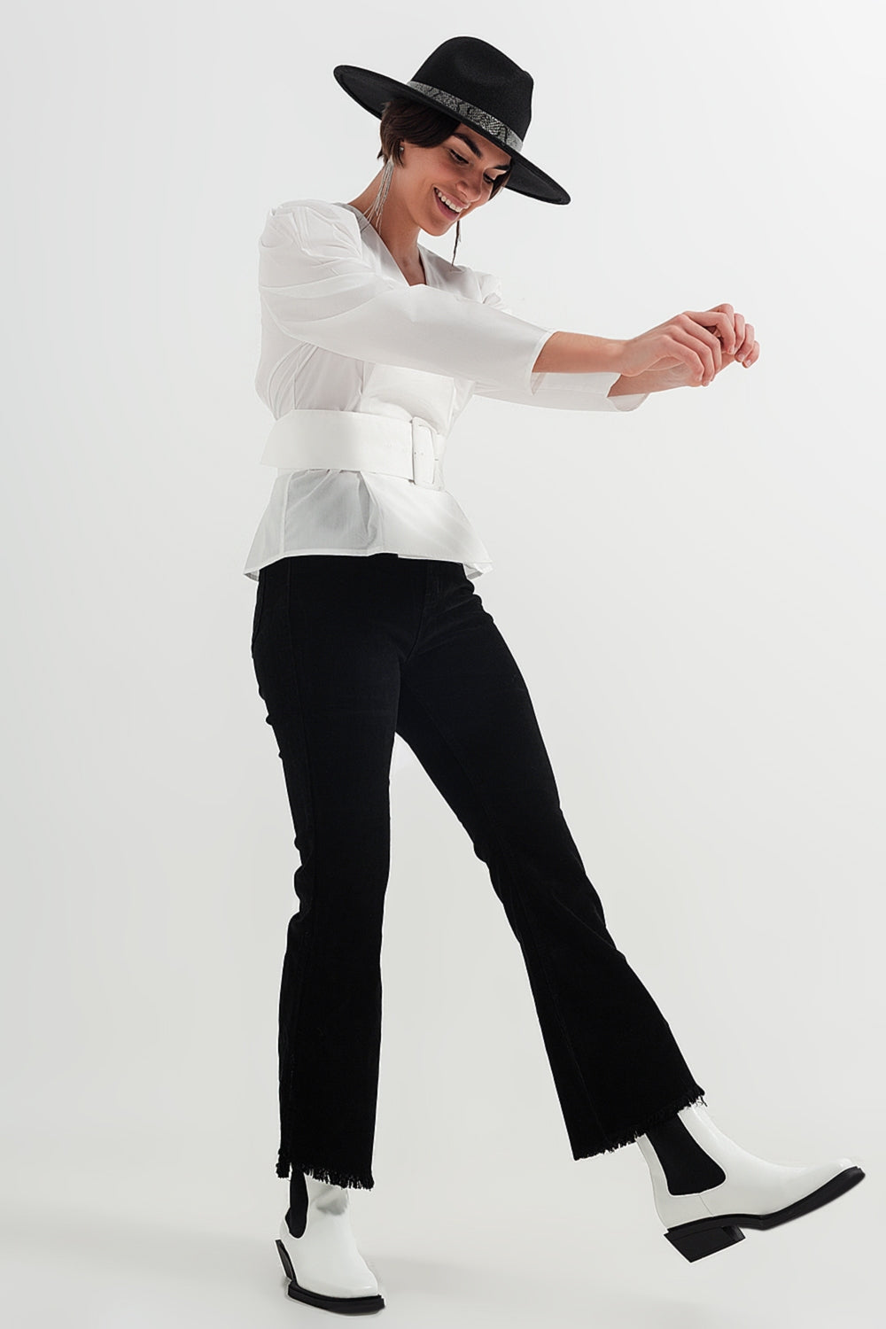Subcategoria: Calças. Cortam: Ajuste Magro. Perna: Flared. estilo: Casual. Tipo calças de ganga: Basic. detalhe: Laços de cinto. Tecido: Corduroy. Bordadura: Bordas esfarrapadas. Detalhes do produto: Bolsos funcionais. runs true to size. S.