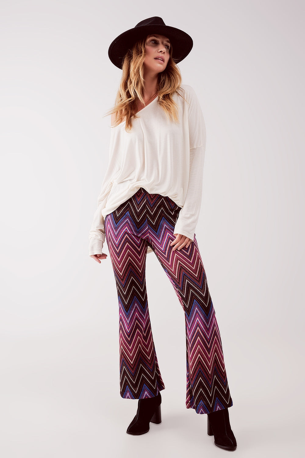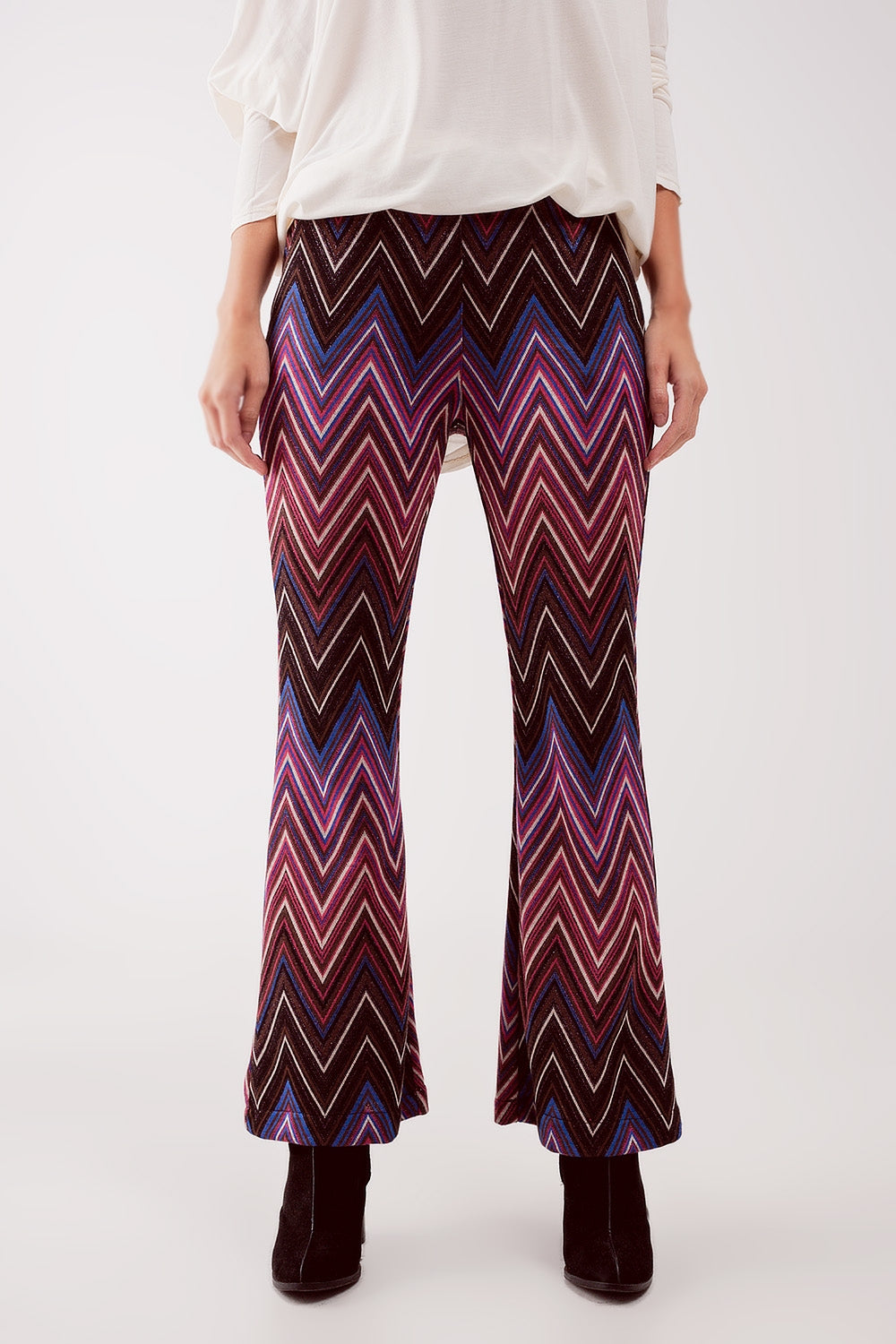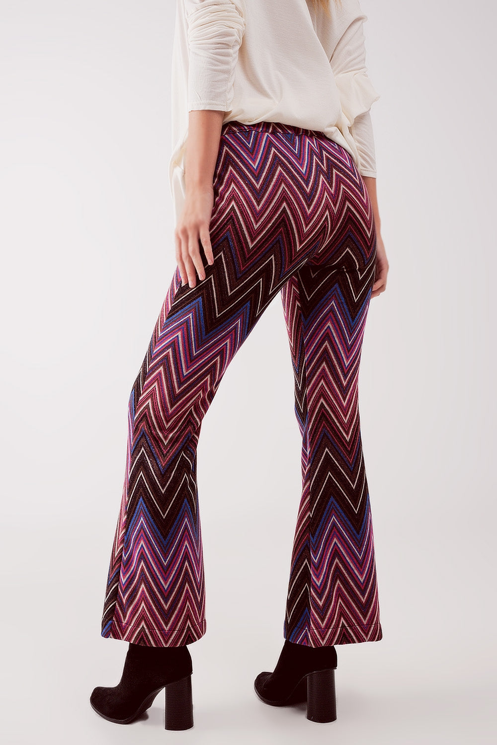 Subcategoria: Calças. Impressao: Geo print. Cortam: Modelo Queimado. Perna: Flared. estilo: Daily. Tecido: Malha macia. bolsos: Bolsos laterais. Fechamento : Fecho de zíper. Detalhes do produto: Bolsos funcionais. runs true to size. S.