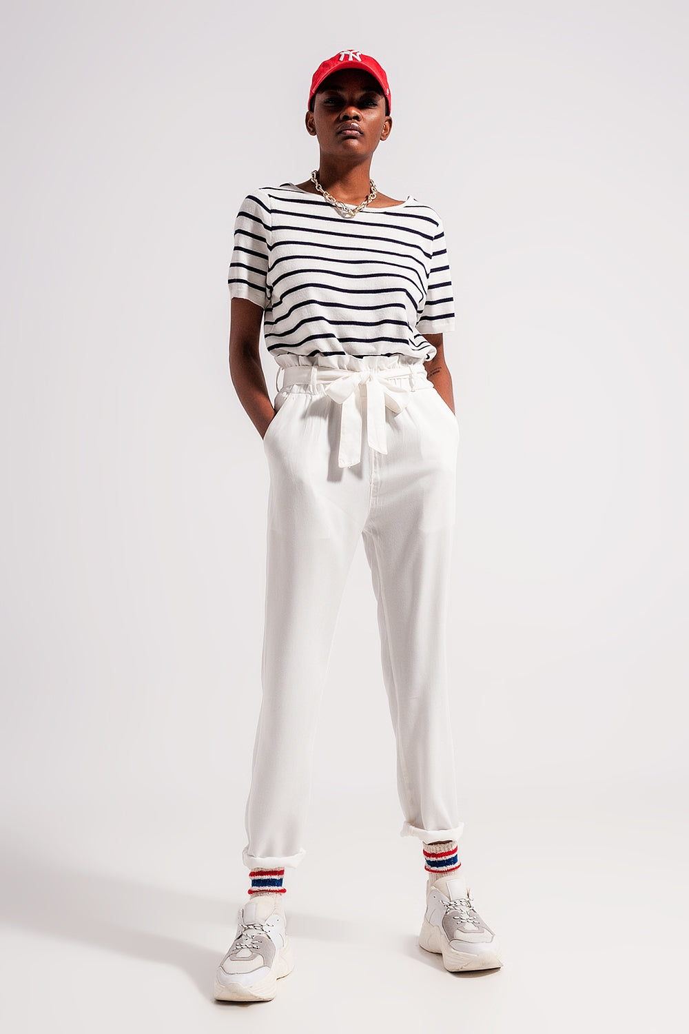 Subcategoria: Jumper . colarinho: Pescoço redondo. Mangas: Manga curta. Impressao: Modelo listrado. estilo: Casual. detalhe: Abertura de costas com laço. Tecido: Malha fina. Fechamento : Gravatas de laço atrás. runs true to size. S.