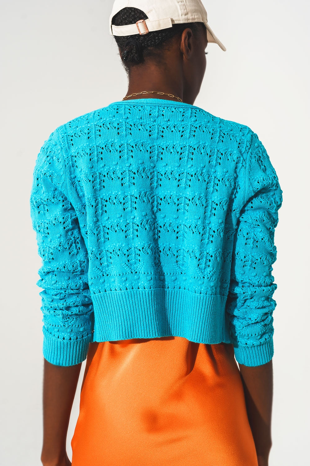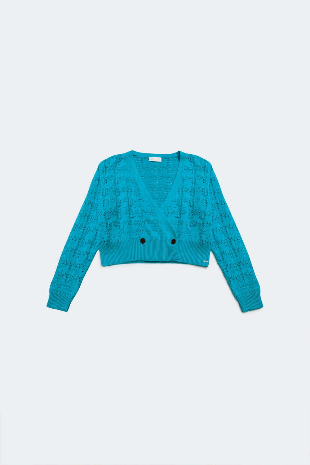 comprimento: Corte curto. Subcategoria: Cardigan . colarinho: Pescoço em V. Mangas: Mangas longas. Cortam: Com cobertura frontal. estilo: Romantic. detalhe: Detalhe de botões. Tecido: Malha Pointelle. Fechamento : Botões parciais. runs true to size. S.