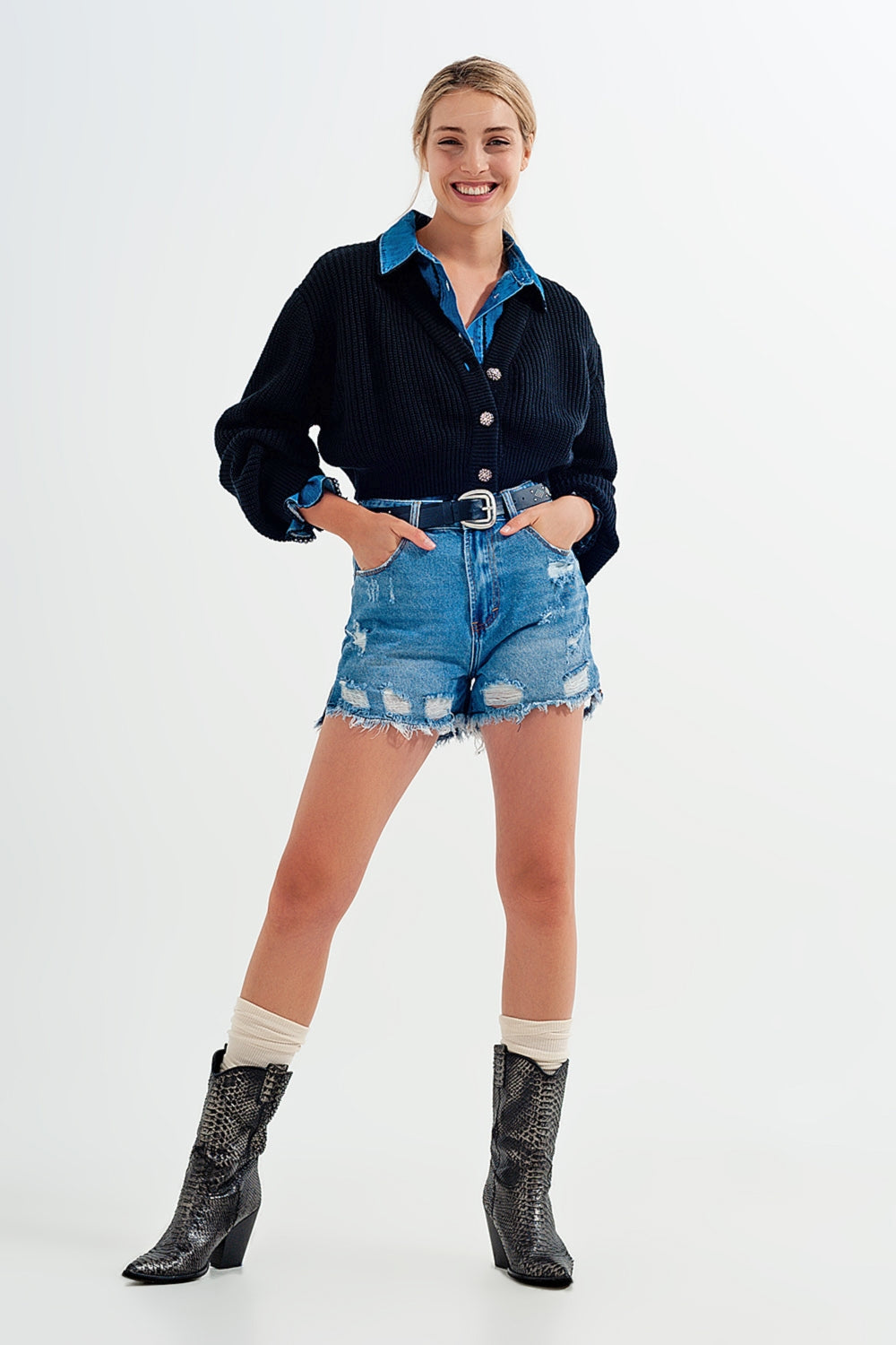 Cardigan de manga comprida e detalhe de botão strass em preto