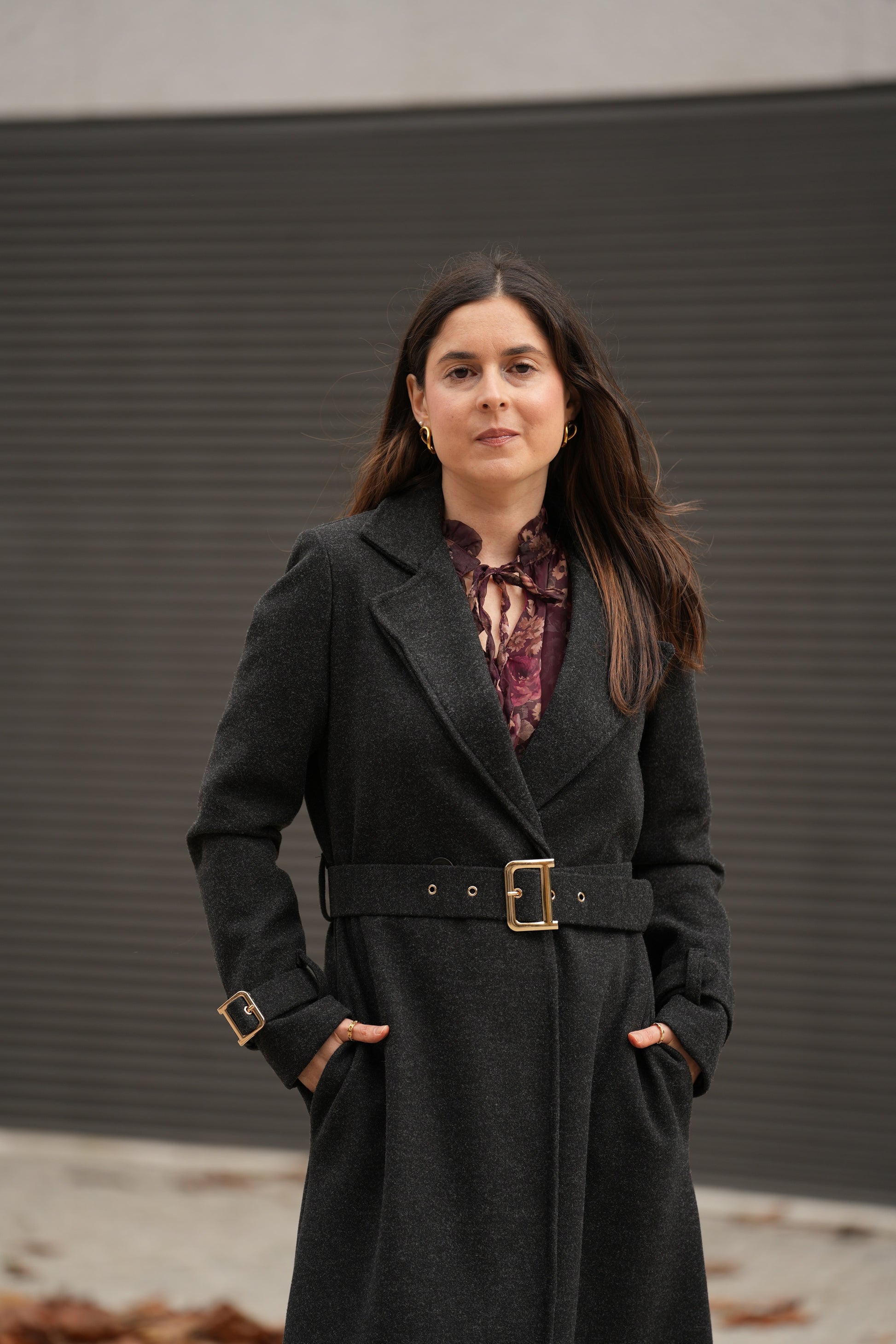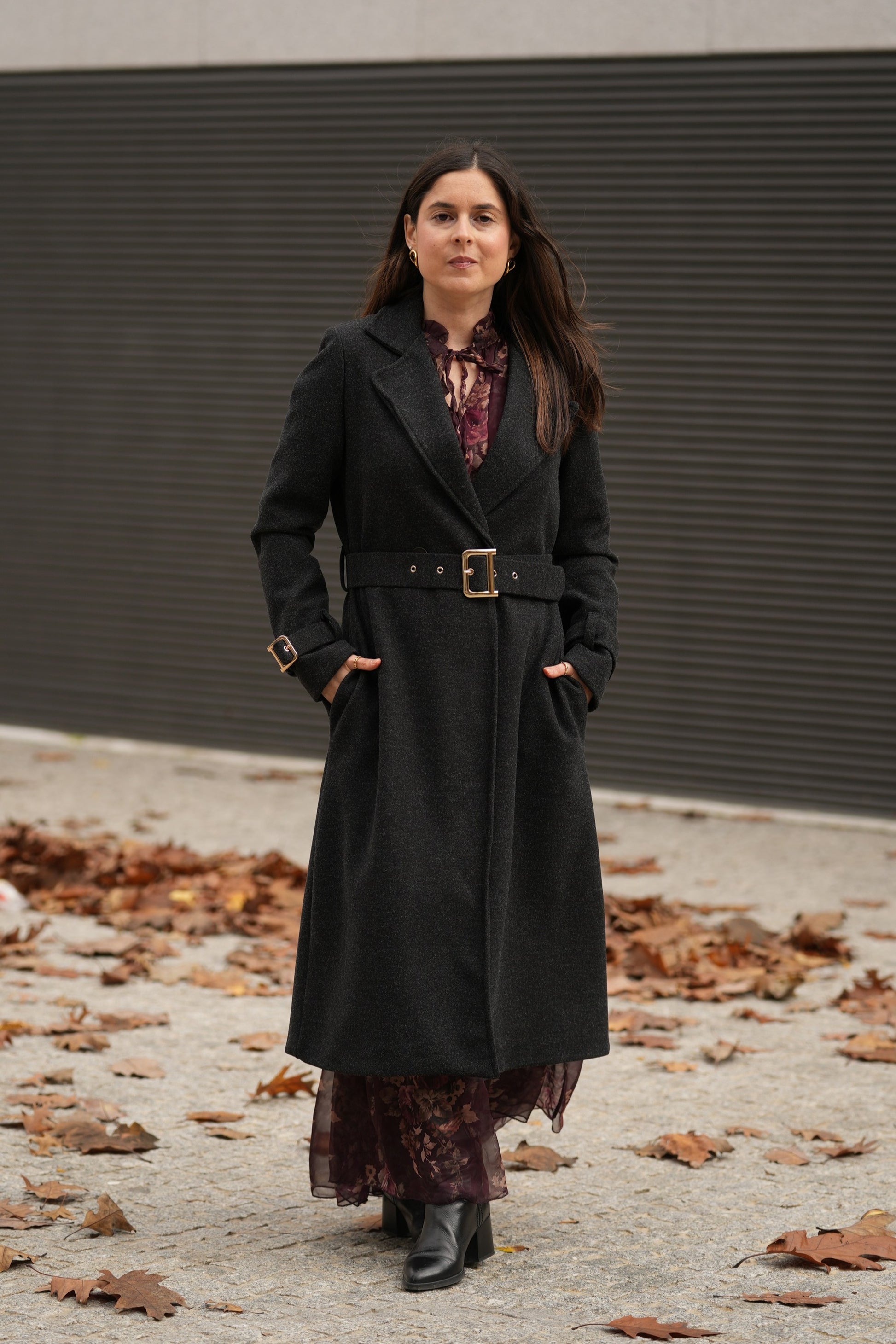Sobretudo com cinto Elegance cinza