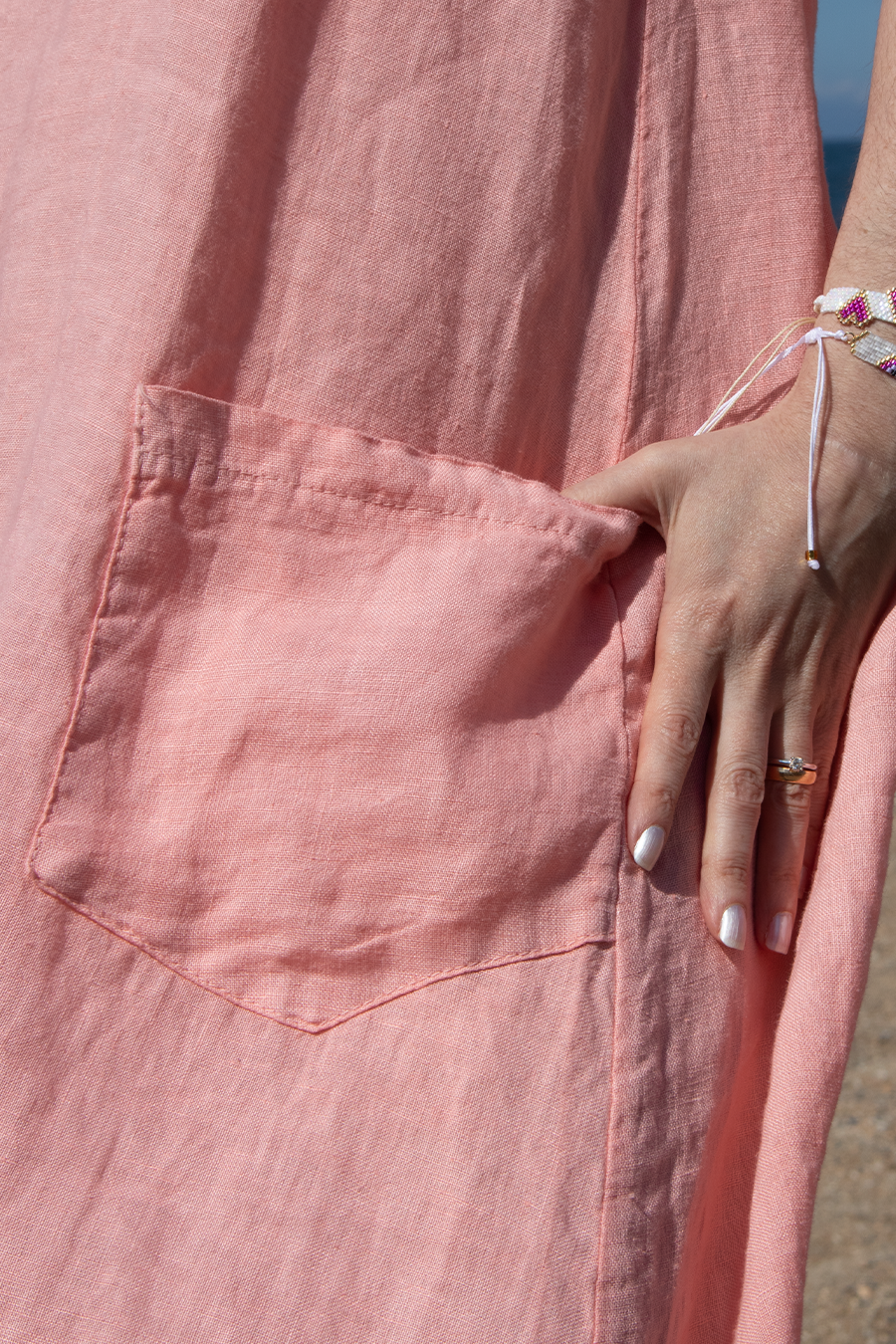Vestido midi. Com bolsos frontais.