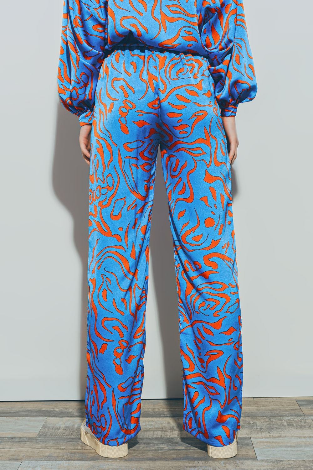 Subcategoria: Calças. Impressao: impressão animal. Cortam: Desenho amplo. Perna: Straight. estilo: Daily. Tipo calças de ganga: Pés rectos. Tecido: Cetim. bolsos: Bolsos laterais. Fechamento : Fecho por laços . Detalhes do produto: Bolsos funcionais. Cintura : Cintura elástica. runs true to size. S.