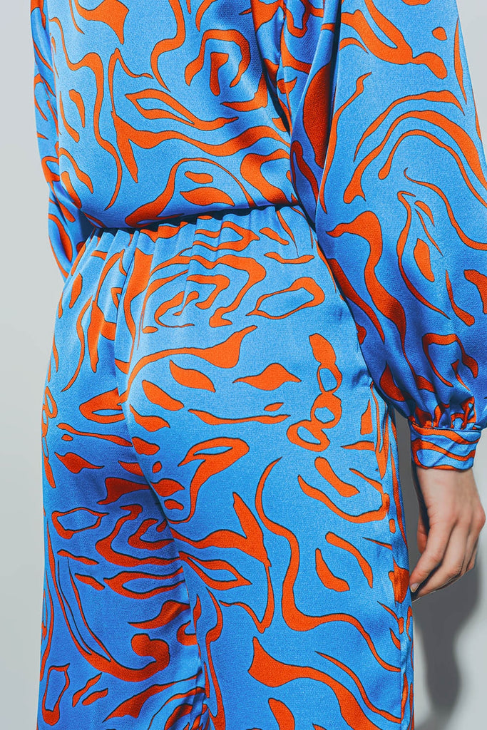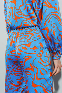 Calças de Cetim com Cintura Elástica em Azul