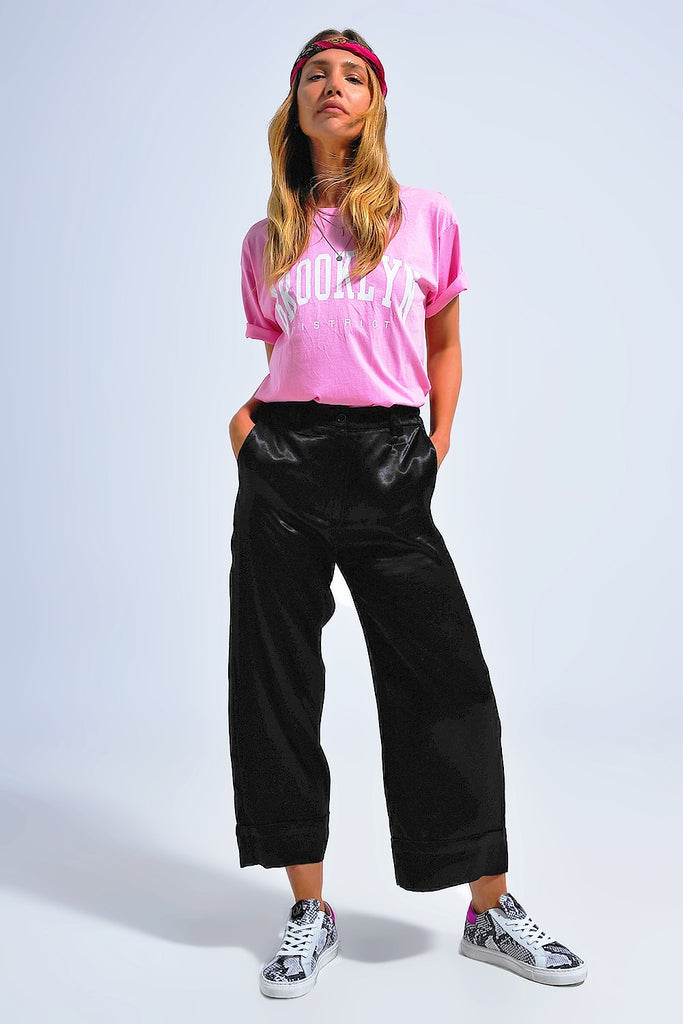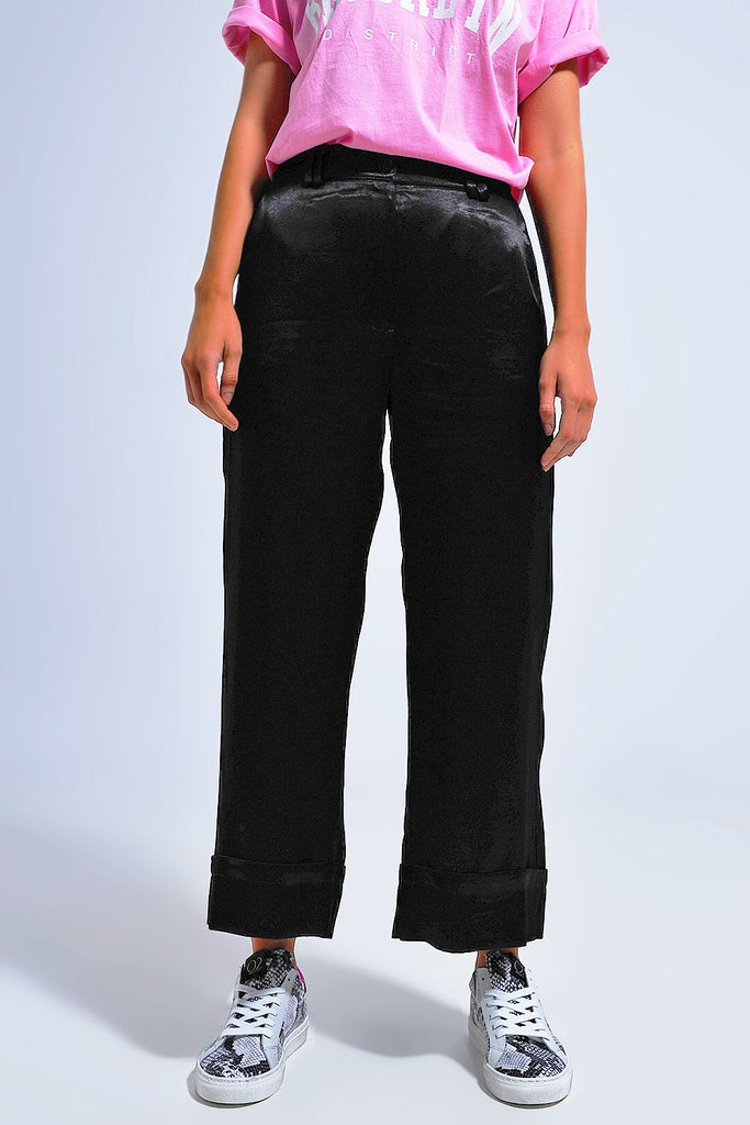 bolsos: Bolsos laterais e de trás. Bordadura: Borda dobrada. Cintura : Elástico na parte de trás. comprimento: Acima do tornozelo. Cortam: Desenho amplo. detalhe: Laços de cinto. Detalhes do produto: Bolsos funcionais. estilo: Party. Fechamento : Fecho de zíper. Perna: Pernas largas. Subcategoria: Calças. Tecido: Cetim. runs true to size. S.