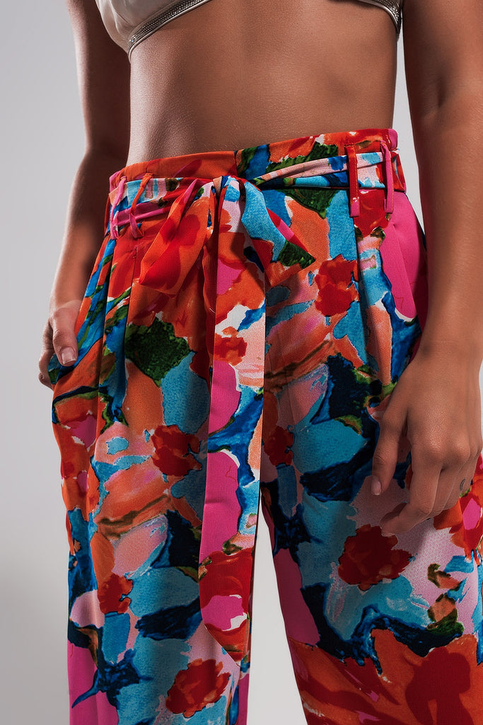 Subcategoria: Calças. Impressao: Com estampa de flores. Cortam: Desenho amplo. Perna: Straight. estilo: Casual. detalhe: Laços de cinto. Tecido: Tecido leve . bolsos: Bolsos laterais. Fechamento : Fecho de zíper. Detalhes do produto: Pernas largas. Cintura : Elástico na parte de trás. runs true to size. S.
