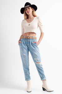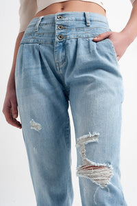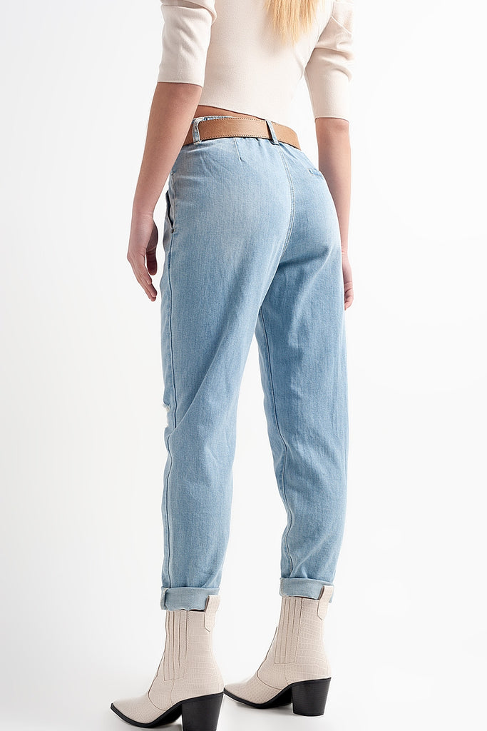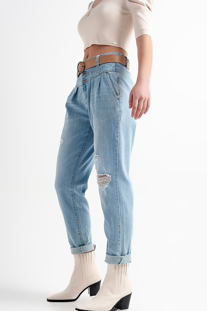 Calças de ganga azuis com cintura dupla
