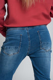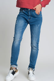 Calças de ganga azuis de boyfriend com desenho desgastado