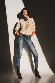Subcategoria: Calças de ganga. Perna: Skinny. estilo: Casual. Tipo calças de ganga: Distressed. detalhe: Acessório não incluído. Tecido: Ganga elástica. bolsos: Cinco sacos. Fechamento : Fecho de zíper. Detalhes do produto: Bolsos funcionais. runs true to size. S.