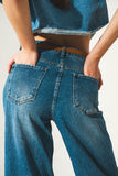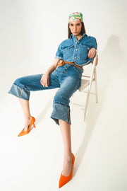 Calças de ganga com bainha enrolada e botões expostos em azul