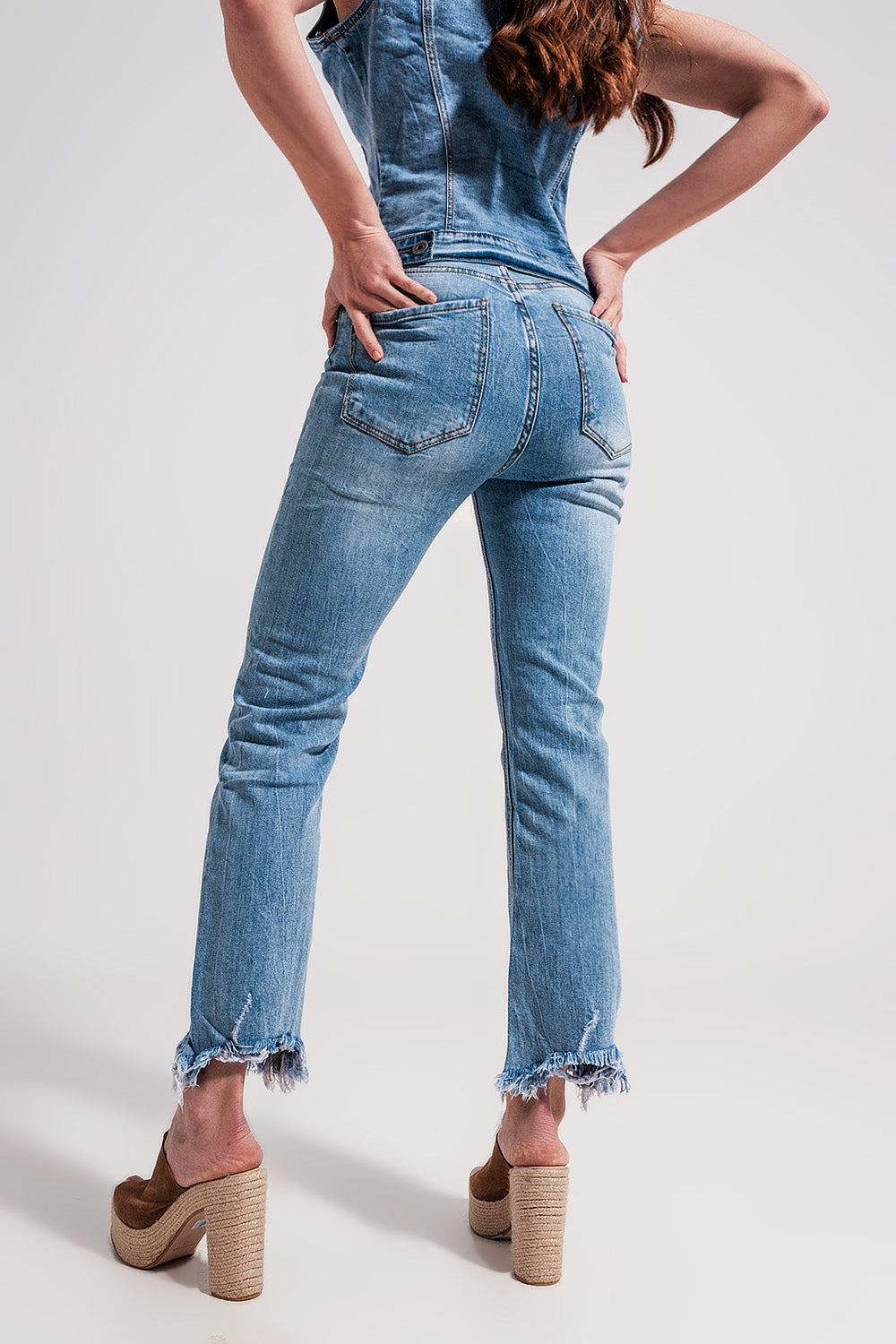 Subcategoria: Calças de ganga. Cortam: Cintura alta. Perna: Straight. estilo: Casual. Tipo calças de ganga: Basic. detalhe: Laços de cinto. Tecido: Ganga elástica. bolsos: Cinco sacos. Fechamento : Fecho de zíper. Bordadura: Bordas esfarrapadas. Detalhes do produto: Bolsos funcionais. runs true to size. S.