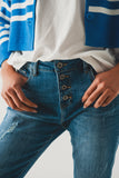 Subcategoria: Calças de ganga. Cortam: Cintura alta. Perna: Straight. estilo: Casual. Tipo calças de ganga: Pés rectos. detalhe: Detalhe de botões. Tecido: Ganga elástica. bolsos: Cinco sacos. Fechamento : Fecho de zíper. runs true to size. S.