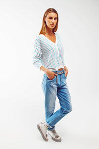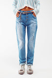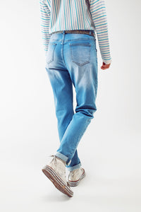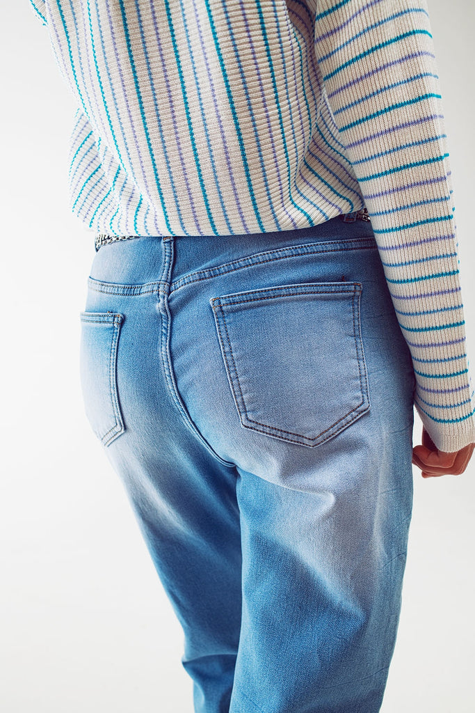 Subcategoria: Calças de ganga. Cortam: Boyfriend. Perna: Straight. estilo: Casual. Tipo calças de ganga: Desenho de efeito desgastado. detalhe: Laços de cinto. Tecido: Ganga elástica. bolsos: Cinco sacos. Fechamento : Fecho de zíper. Detalhes do produto: Bolsos funcionais. runs true to size. S.