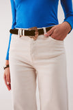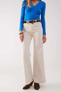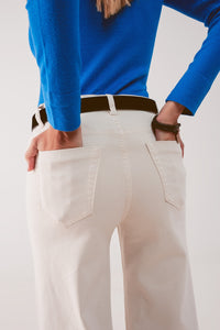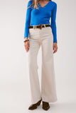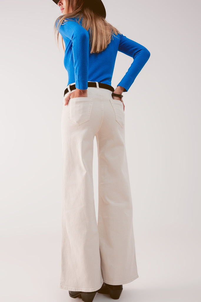 Calças de ganga de fundo largo em mistura de algodão bege