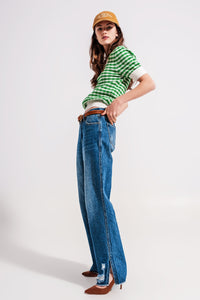 Subcategoria: Calças de ganga. Cortam: Cintura alta. Perna: Straight. estilo: Casual. Tipo calças de ganga: Desenho de efeito desgastado. detalhe: Laços de cinto. Tecido: Ganga rígida não esticada. bolsos: Cinco sacos. Fechamento : Fecho de zíper. runs true to size. S.