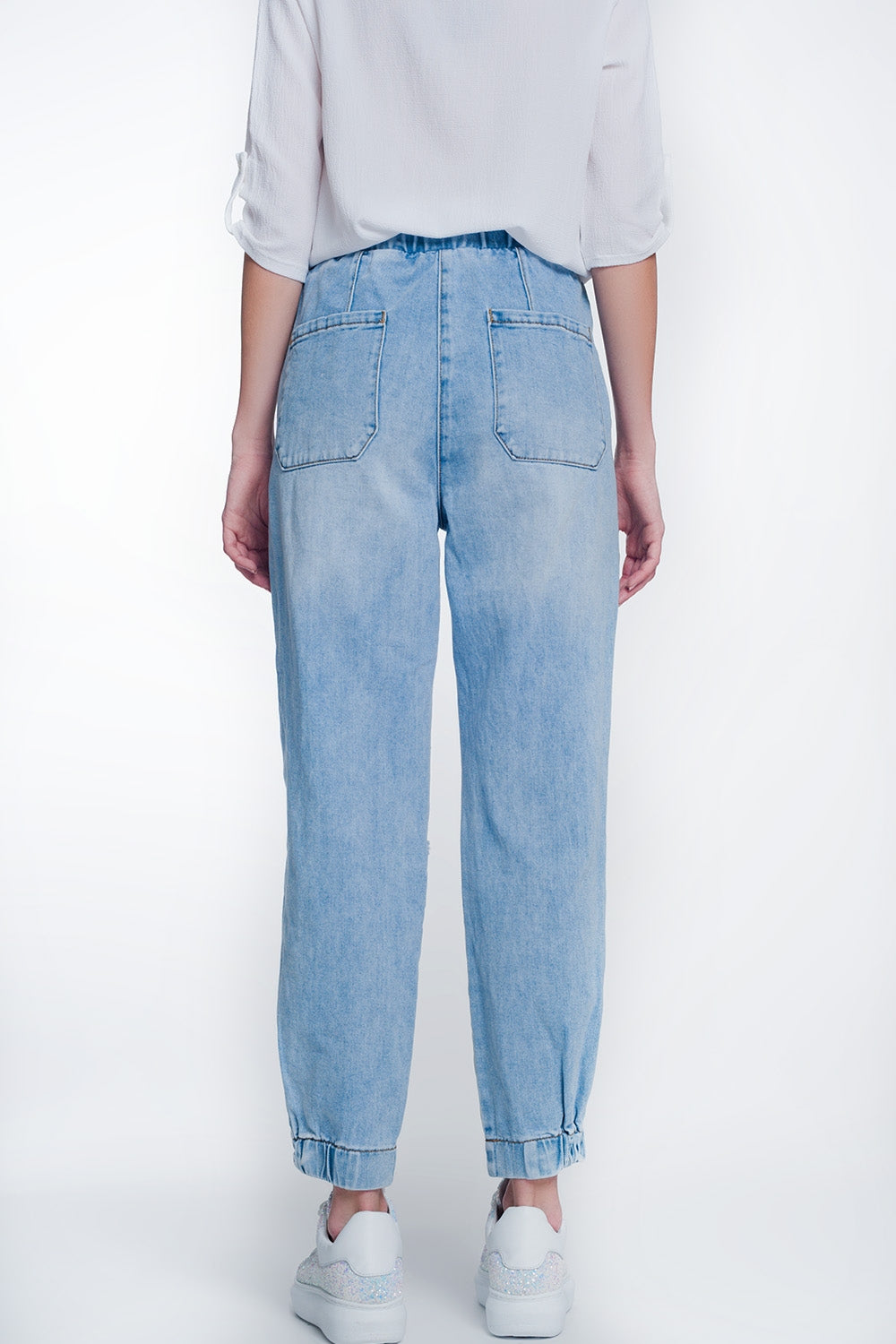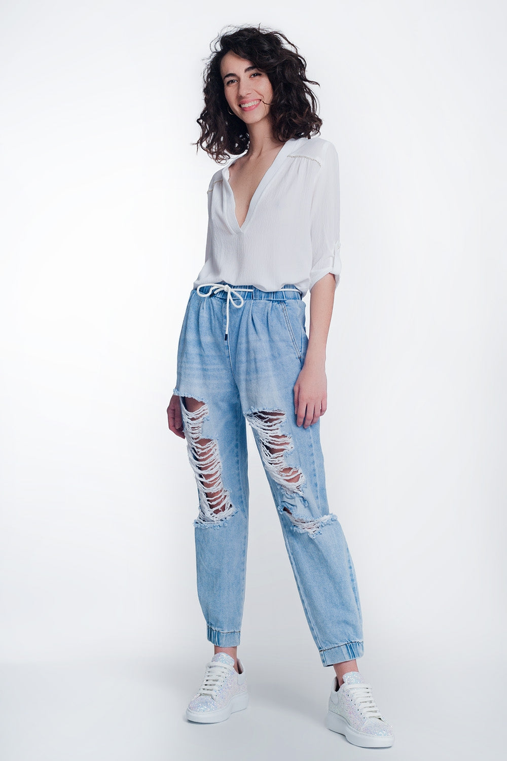 Calças de ganga fortemente rasgado cor claro