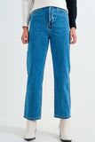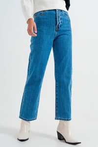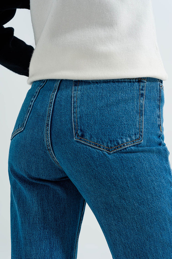Calças de ganga Mom azuis de cintura alta