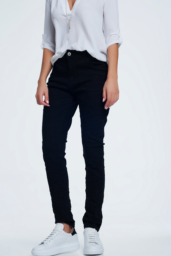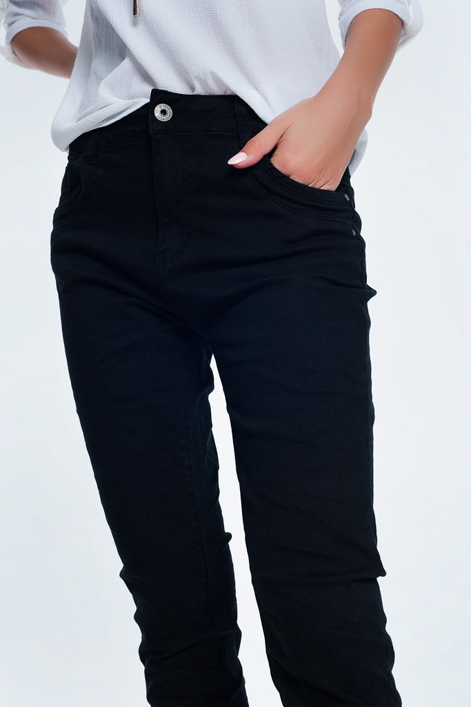 Calças de ganga preto com baixa virilha