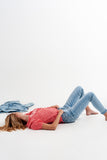 Calças de ganga rasgadas e descoloridas