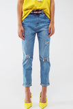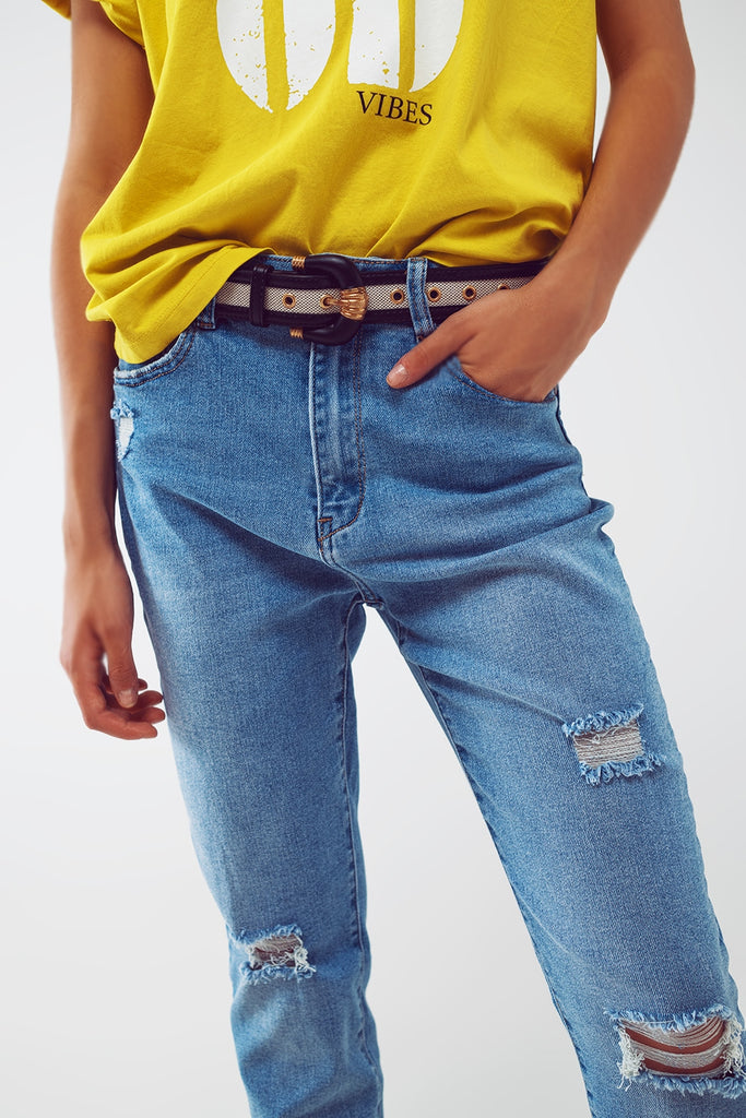 Subcategoria: Calças de ganga. Cortam: Desenho amplo. estilo: Casual. Tipo calças de ganga: Desenho de efeito desgastado. detalhe: Laços de cinto. Tecido: Ganga elástica. bolsos: Cinco sacos. Fechamento : Fecho de zíper. Detalhes do produto: Bolsos funcionais. runs true to size. S.