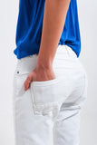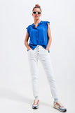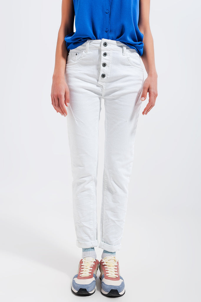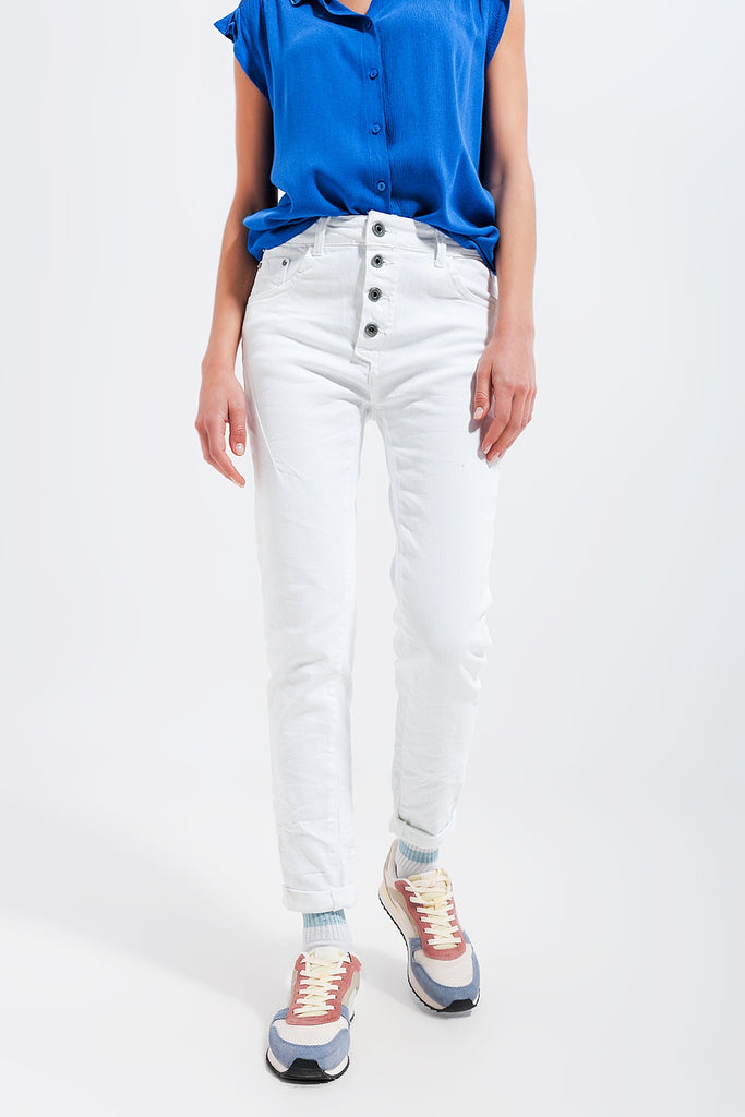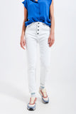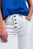 Calças de ganga skinny branco com fecho de botão exposto