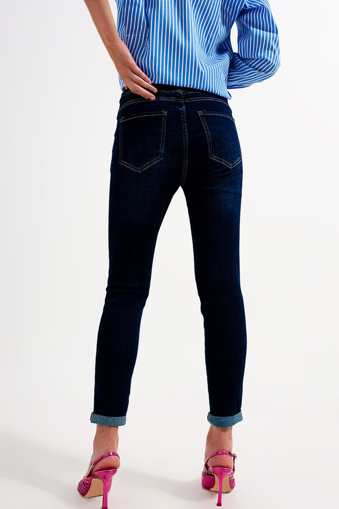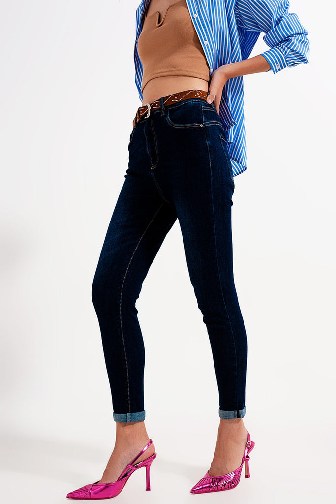 Calças de ganga skinny de lavagem azul escuro com ajuste skinny