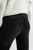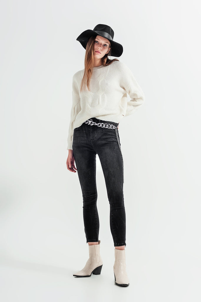 Calças de ganga skinny de lavagem preta e fecho nas bainhas
