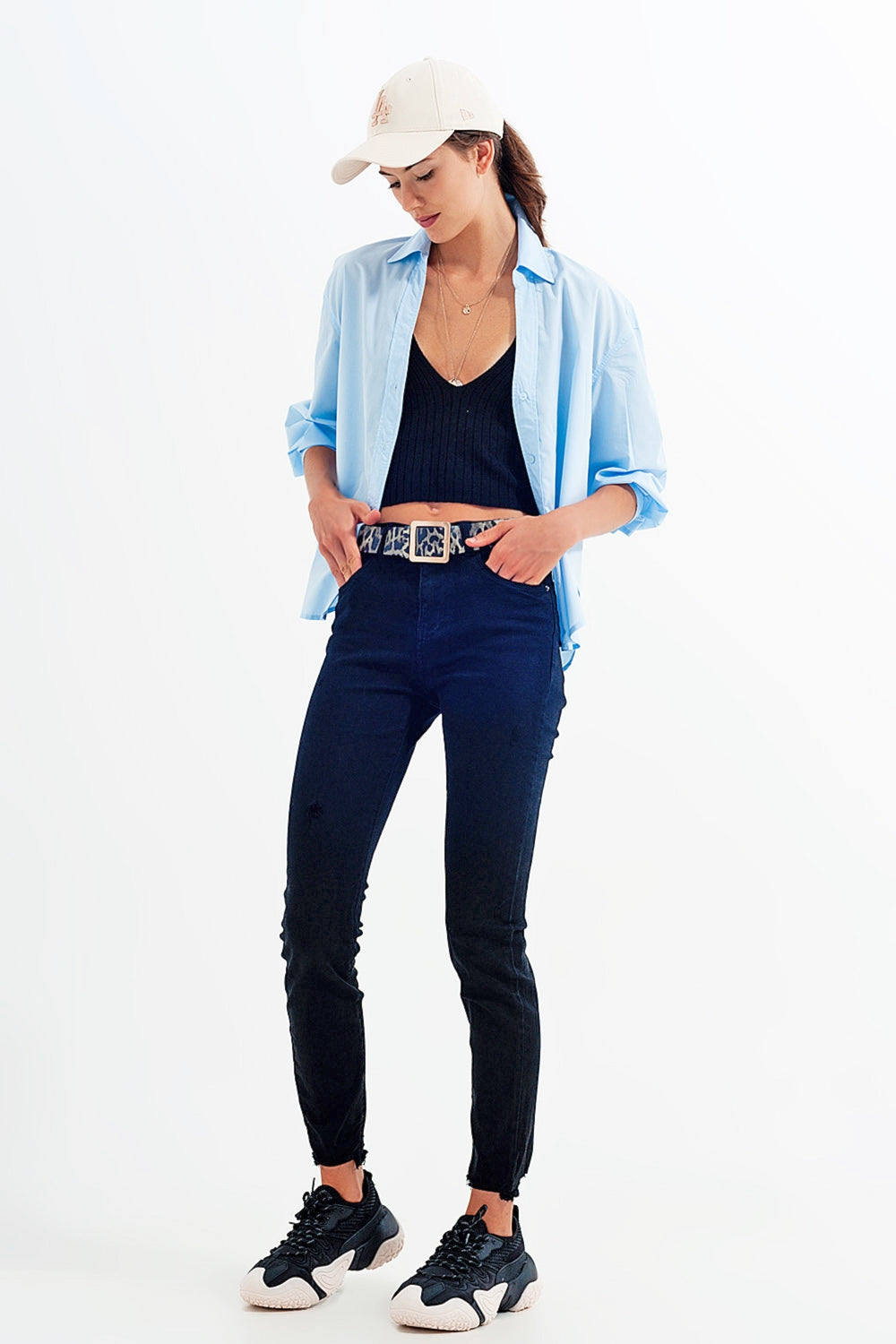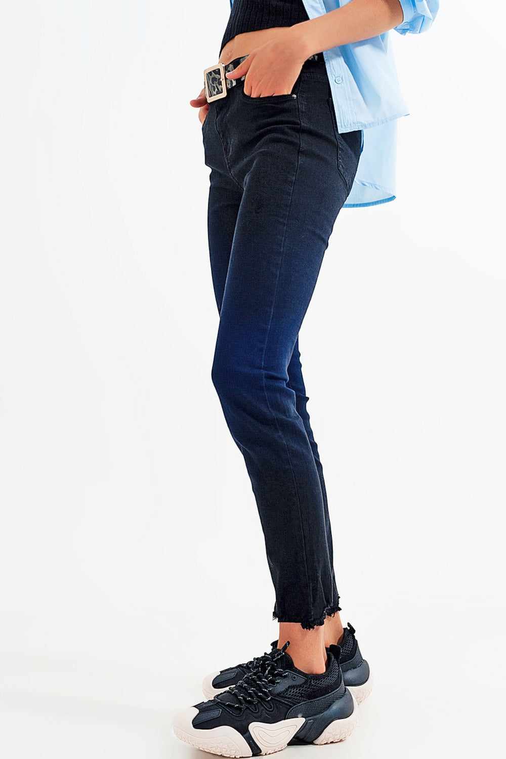 Calças de ganga skinny pretas lavadas com o fundo recortado