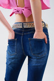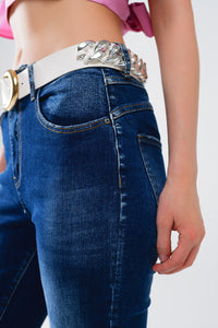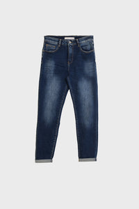 Calças de ganga Super Skinny lavagem escura em ganga elástica