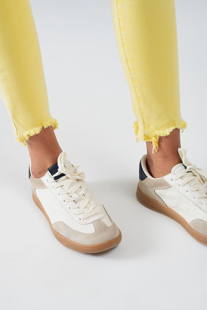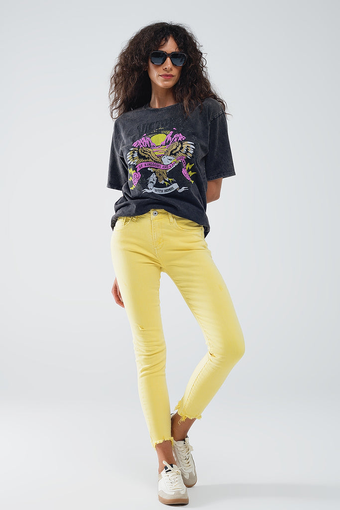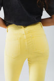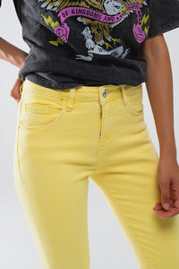 Calças de ganga super skinny Stretch com bainha recortada amarela