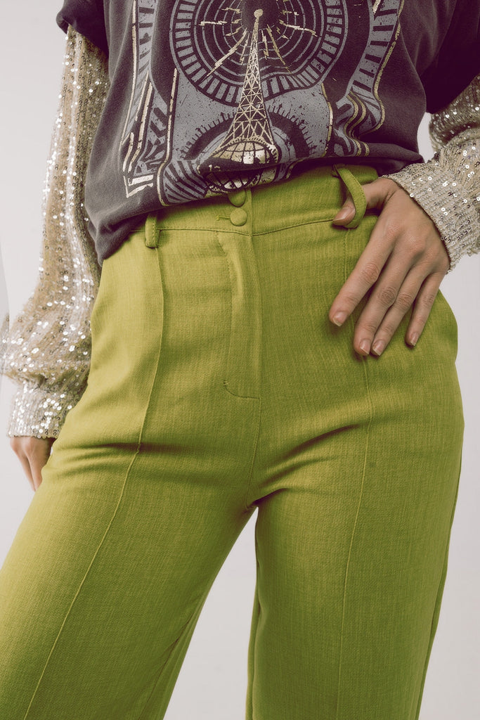 Calças de perna direita verde