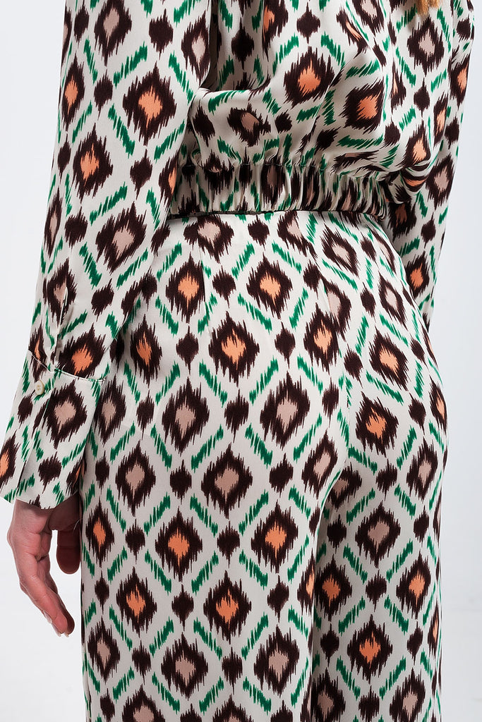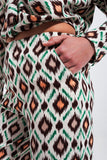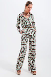 Subcategoria: Calças. Impressao: Geo print. Cortam: Desenho amplo. Perna: Pernas largas. estilo: Classic. Tecido: Tecido leve . bolsos: Bolsos laterais. Fechamento : Fecho de zíper. Detalhes do produto: Bolsos funcionais. runs true to size. S.