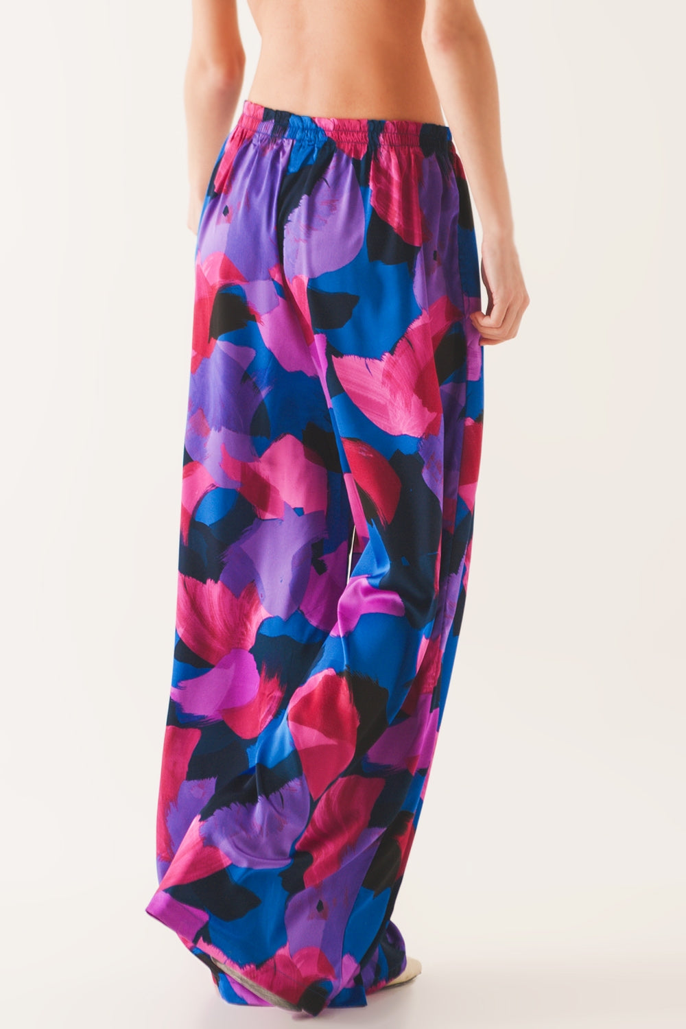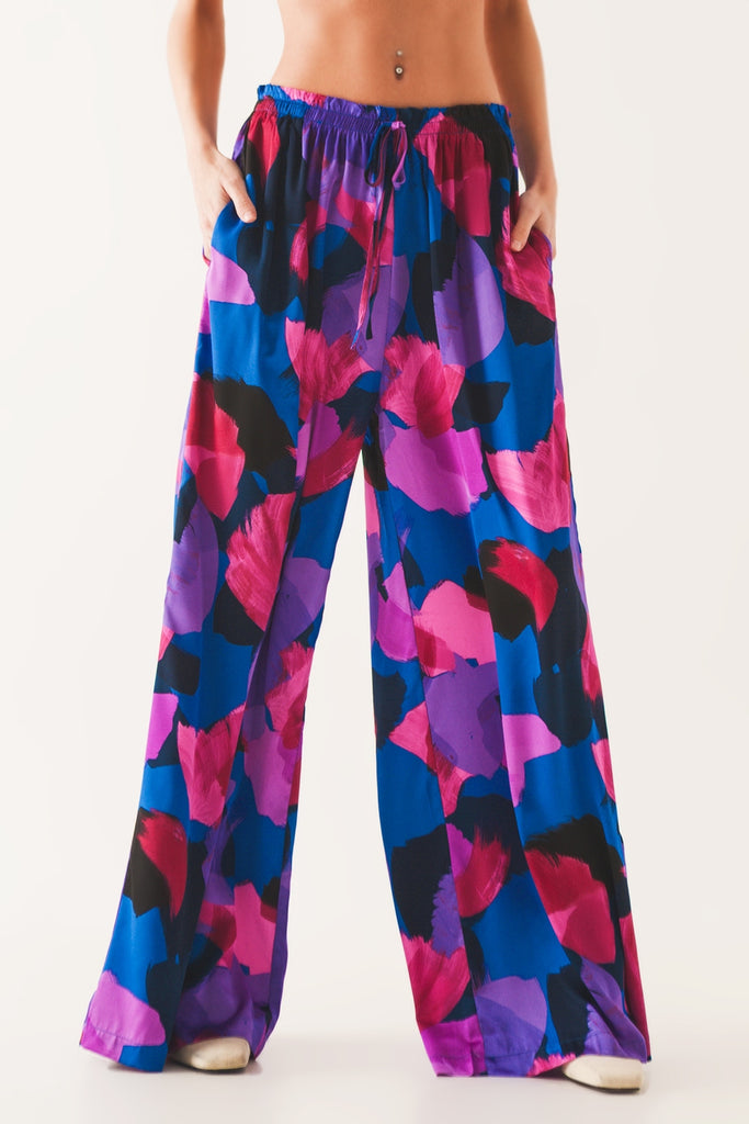 comprimento: Comprimento maxi. Subcategoria: Calças. Impressao: Com estampa de flores. Cortam: Desenho amplo. Perna: Pernas largas. estilo: Daily. Tecido: Cetim. bolsos: Bolsos laterais. Fechamento : Fechamento por cordão de arrasto. Detalhes do produto: Bolsos funcionais. Cintura : Cintura elástica. runs true to size. S.