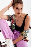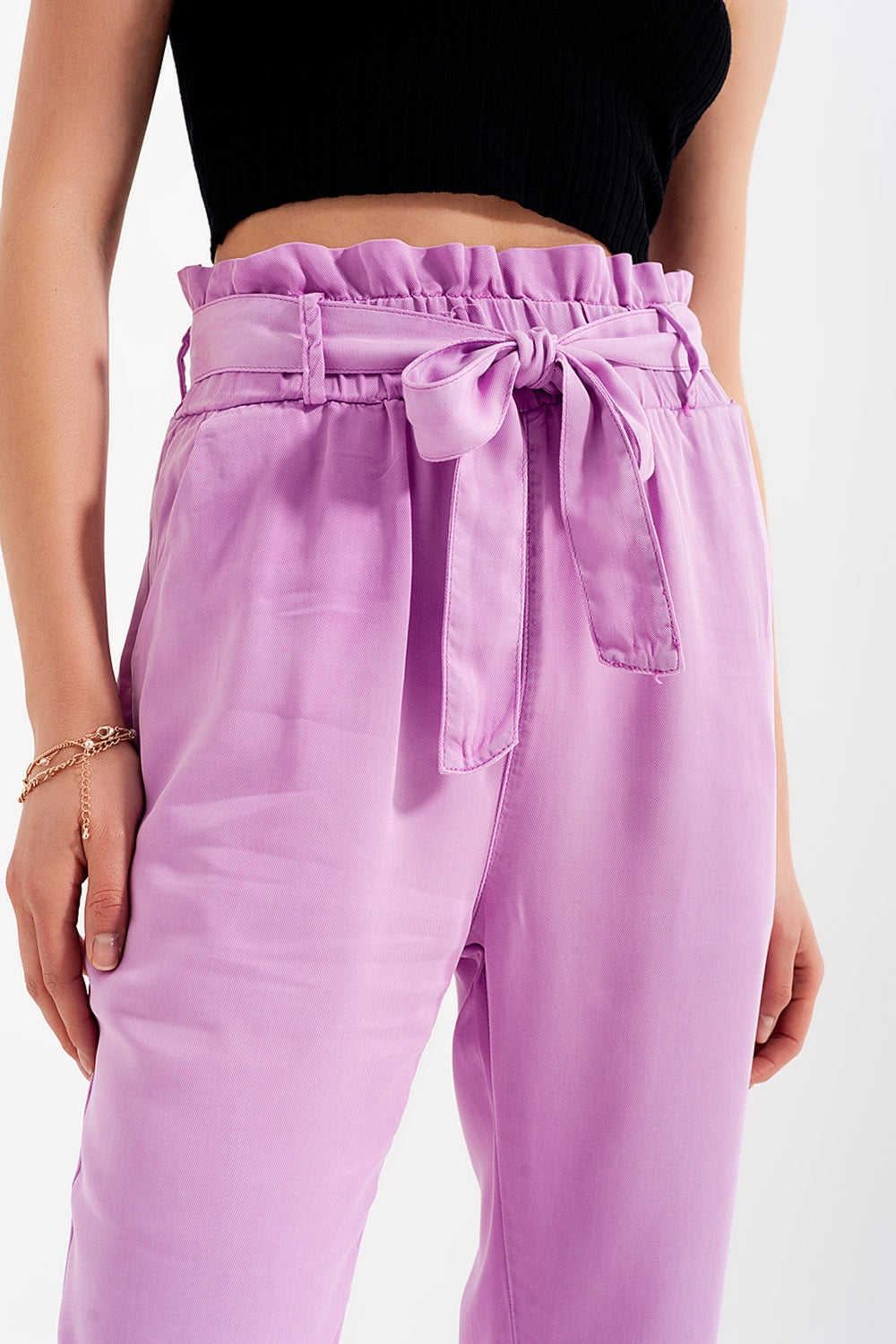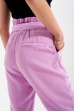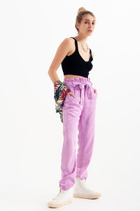 Calças leve com cintura de laço em violeta
