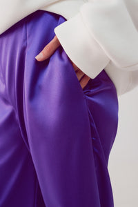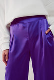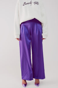 Calças púrpura de cetim de fundo largo
