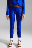 Calças super skinny de couro falso em azul elétrico.