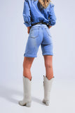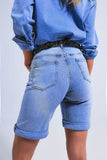 bolsos: Cinco sacos. Bordadura: Borda dobrada. comprimento: Corte curto. Cortam: Ajuste Magro. detalhe: Laços de cinto. Detalhes do produto: Bolsos funcionais. estilo: Casual. Fechamento : Fecho de zíper. Perna: Skinny. Subcategoria: Calções. Tecido: Ganga elástica. Tipo calças de ganga: Basic. runs true to size. S.