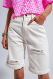 bolsos: Cinco sacos. Bordadura: Borda dobrada. comprimento: Corte curto. Cortam: Ajuste padrão. detalhe: Laços de cinto. Detalhes do produto: Bolsos funcionais. estilo: Casual. Fechamento : Fecho de zíper. Perna: Straight. Subcategoria: Calções. Tecido: Ganga rígida não esticada. Tipo calças de ganga: Distressed. runs true to size. S.