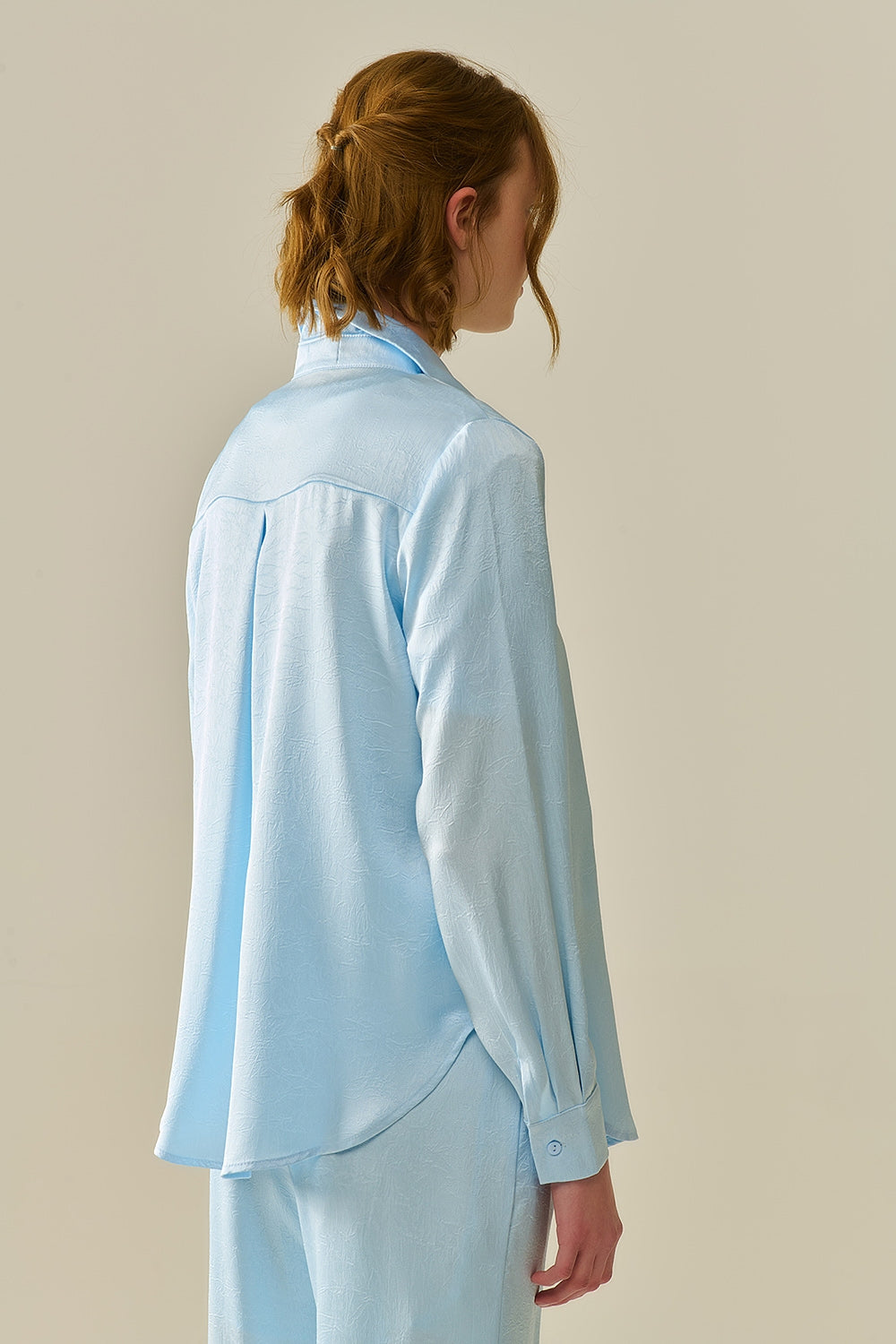 Camisa Azul Bebê com Botões em Cetim