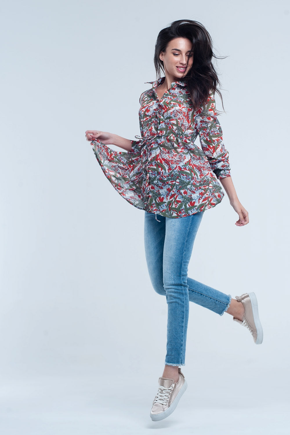 Subcategoria: Camisa . colarinho: Pescoço em V. Mangas: Mangas longas. Impressao: Com estampa de flores. estilo: Casual. runs true to size. S.
