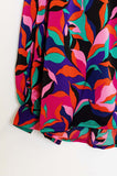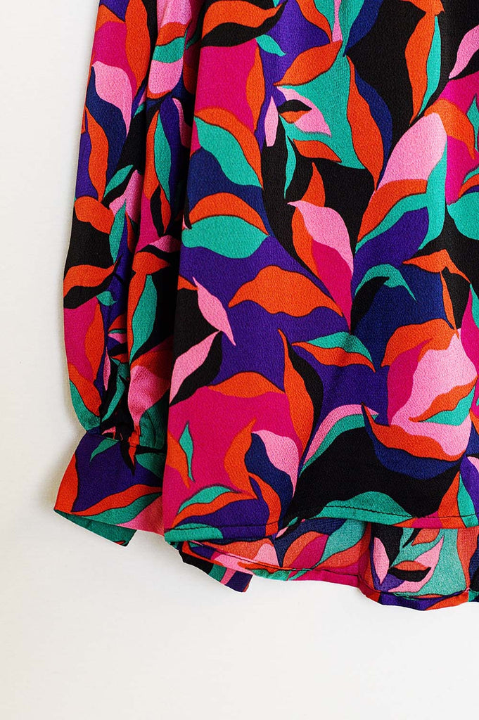 Camisa volumosa oversized em estampa abstrata de folhas coloridas