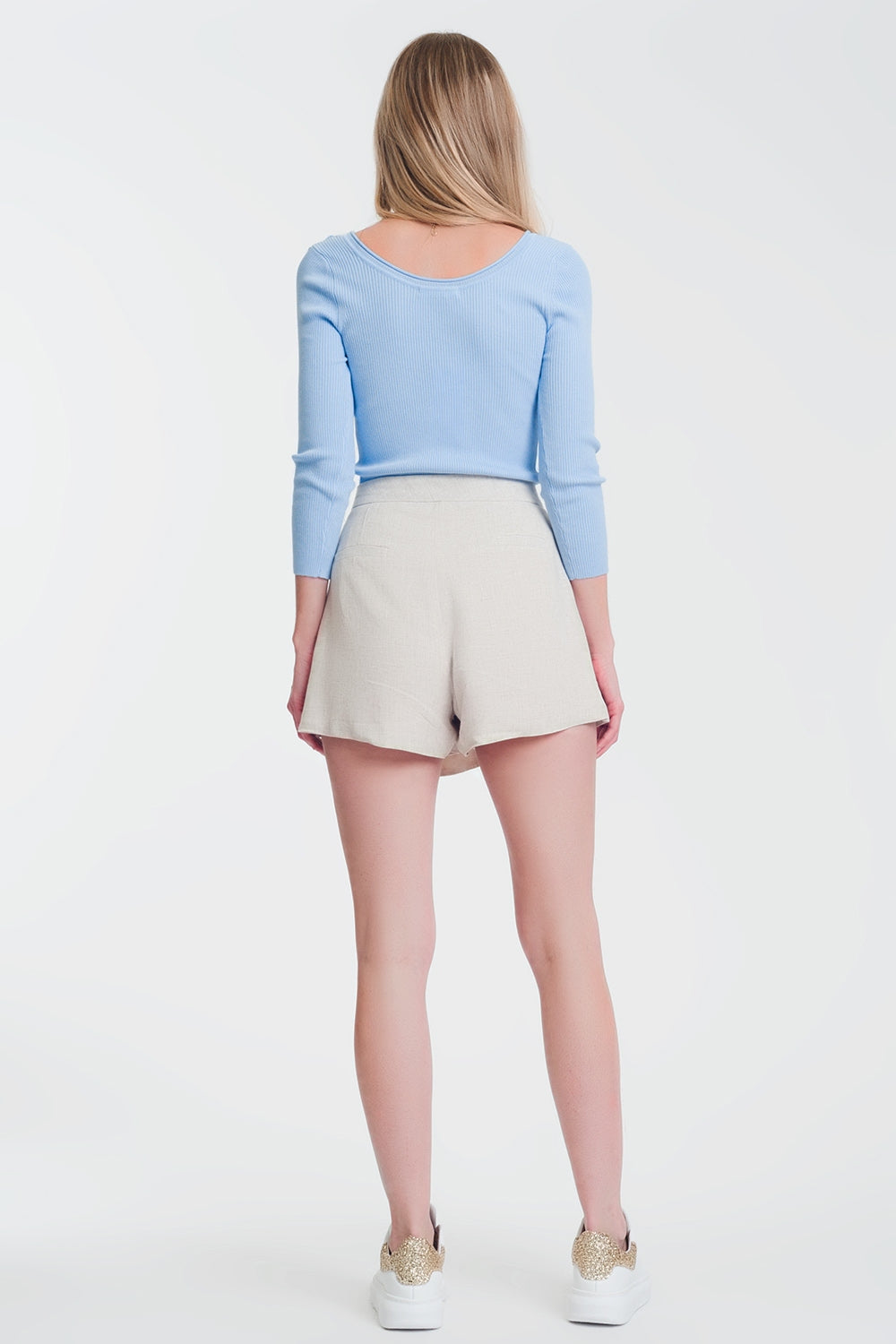 Camisola azul com decote largo