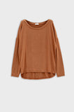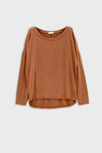 Camisola com gola redonda e manga comprida em modal na cor camel